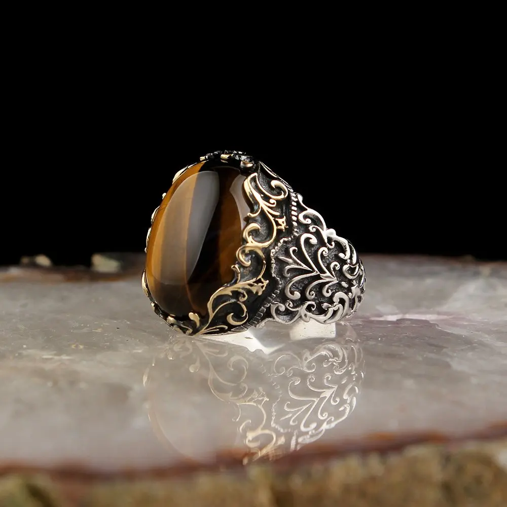 Мужские кольца с турецким агатом Ye men e Aqeeq из серебра 925 пробы