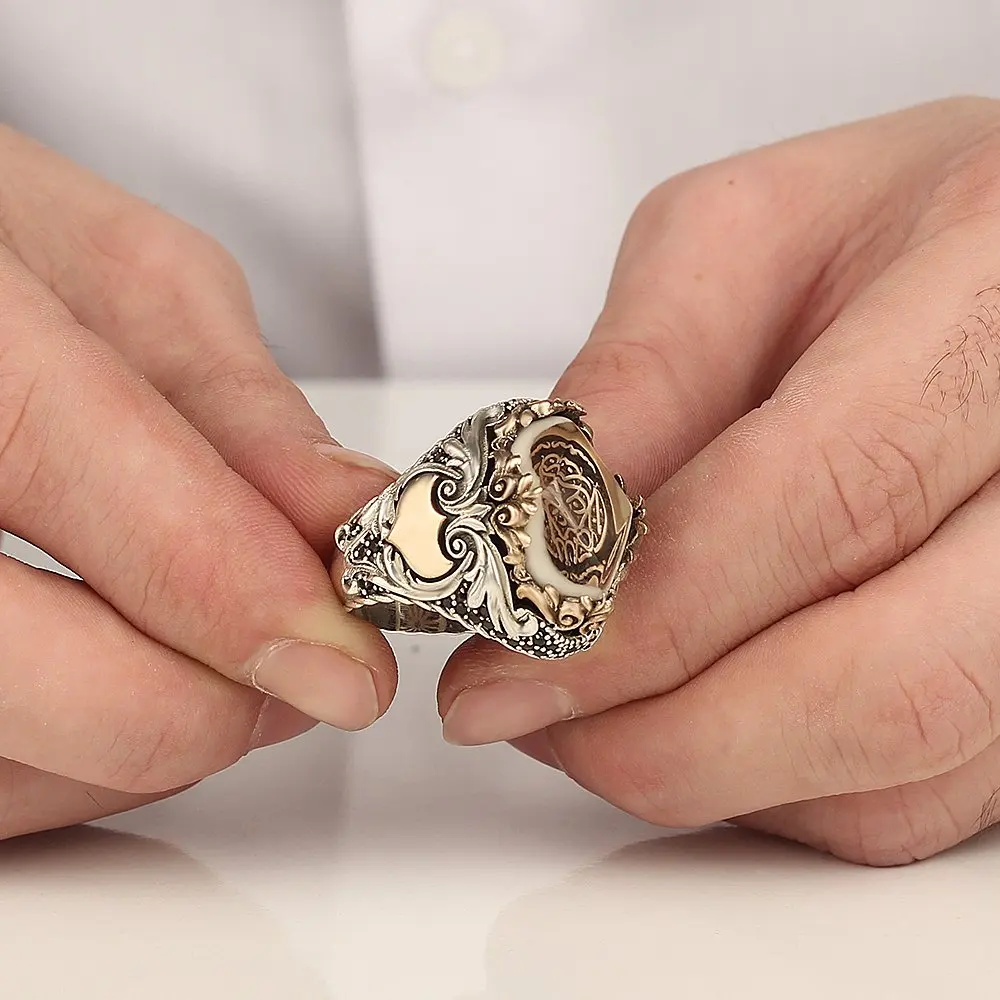 Мужские кольца с турецким агатом Ye men e Aqeeq из серебра 925 пробы