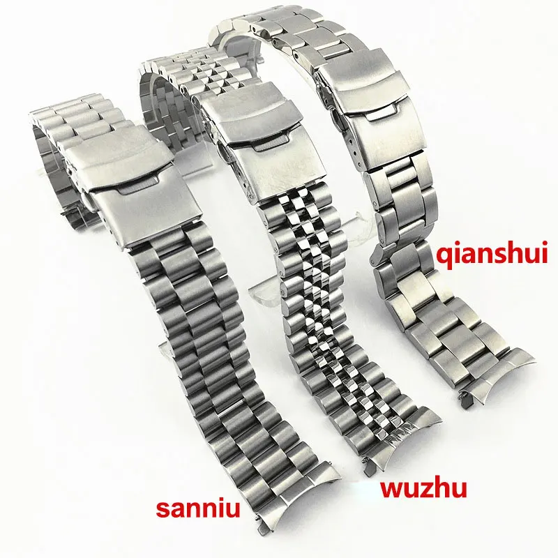 Ремешок для часов из нержавеющей стали, Серебряный полированный, мужские Роскошные браслеты, изогнутый конец, замена для seiko SKX007 SKX009 20 мм 22 мм