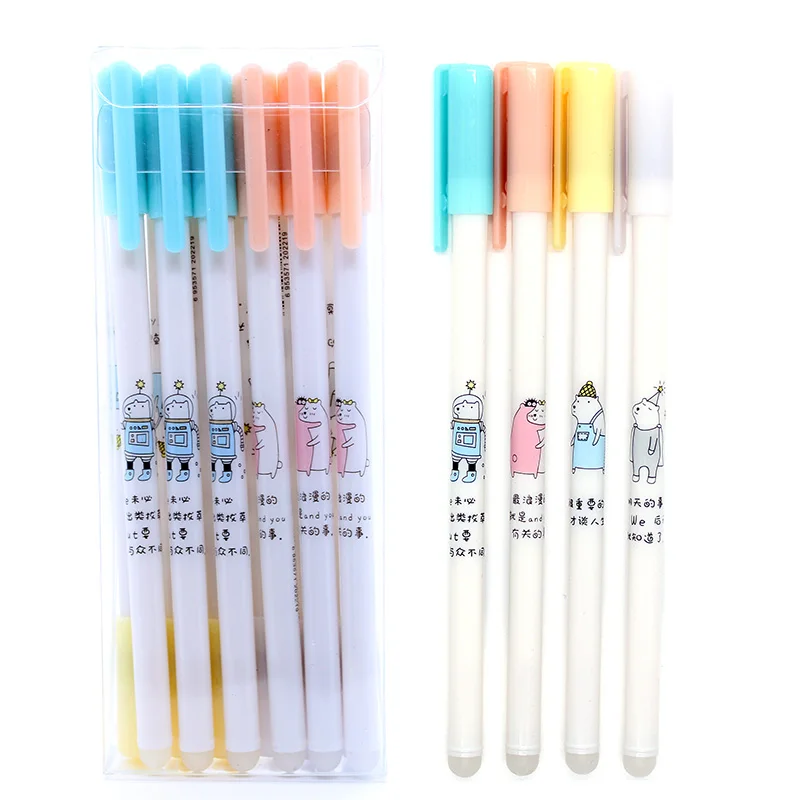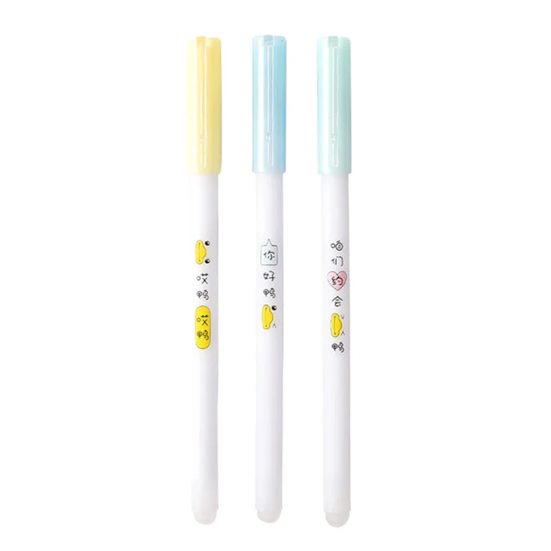Название: 3 шт./компл. простой мультфильм со стирающимися чернилами гелевые ручки 0,5 мм черные, голубые чернила ручка с чернилами стандартных цветов для школы и офиса письменные инструменты милые канцелярские принадлежности
