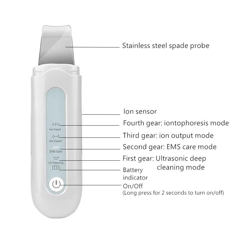 1. Ультразвуковая очистка ультразвуковой очистки глубоких пор, глубоко проникает в кожу, удаляет грязь и более эффективно очищает кожу.