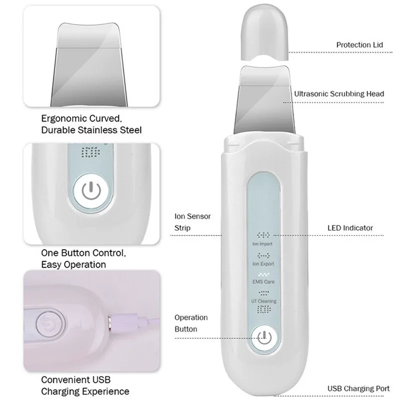 Кожа очищающий скраб скребок для удаления угрей Ион вибрации акне ультразвуковой Глубокая чистка лица Уход за кожей Инструмент для чистки пор