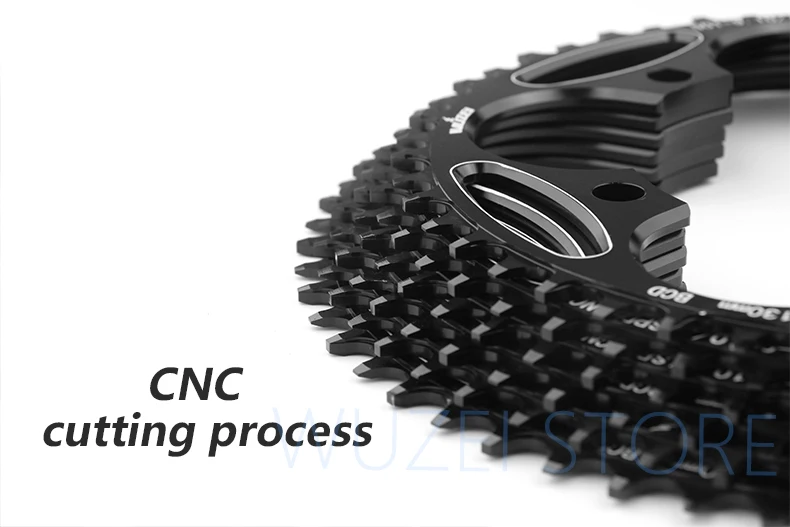 CNC процесс 7075 алюминиевый сплав Цвет: анодированный черный Размер: 110 BCD, 130 BCD Толщина: 4 мм Скорость: 9 10 11 12 цепь скорости. Поддержка Sram и Shimano 12 скоростной цепи Подходит для: 110/130 BCD Кривошип, 5 рычагов Для ротора 110/130BCD дорожный велосипед