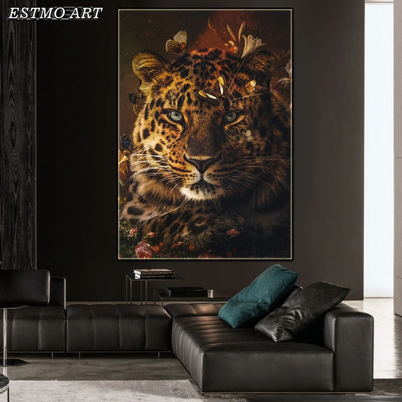 Плакат абстрактного искусства лося Тигр Слон Лев, рисунок на холсте на заказ Печать животных Картина Скандинавское украшение комнаты Современная живопись