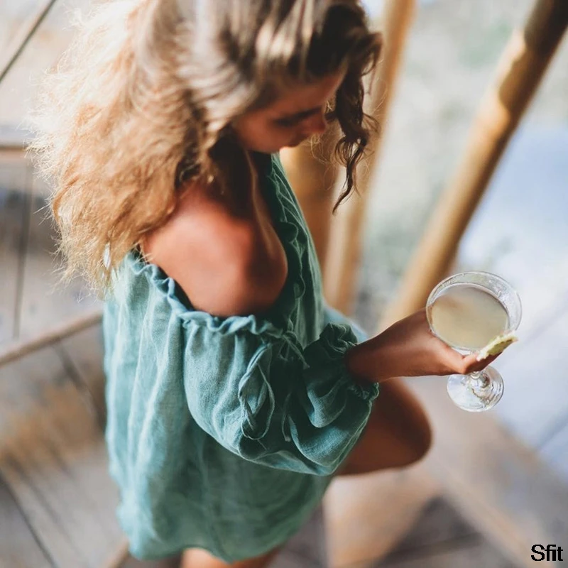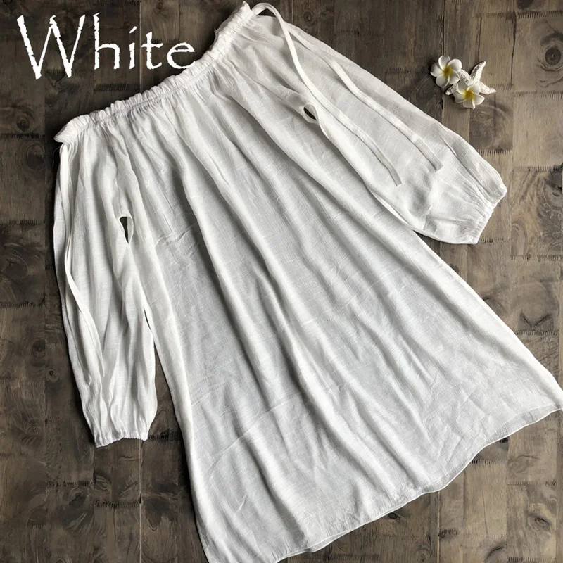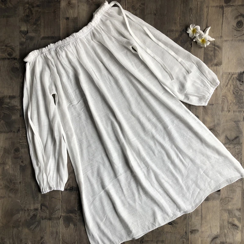 Лидер продаж 2022, хлопковое пляжное платье, накидка, модная пляжная туника для плавания, пляжная одежда с длинным рукавом, женская накидка-Бикини на плечо, туника # Y7