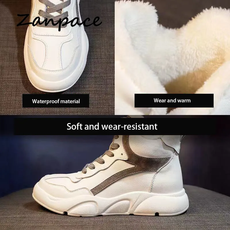 Женские зимние кожаные ботинки ZANPACE, новинка 2020, бархатная обувь на толстой платформе и хлопковой подкладке, водонепроницаемые лыжные теплые женские ботинки