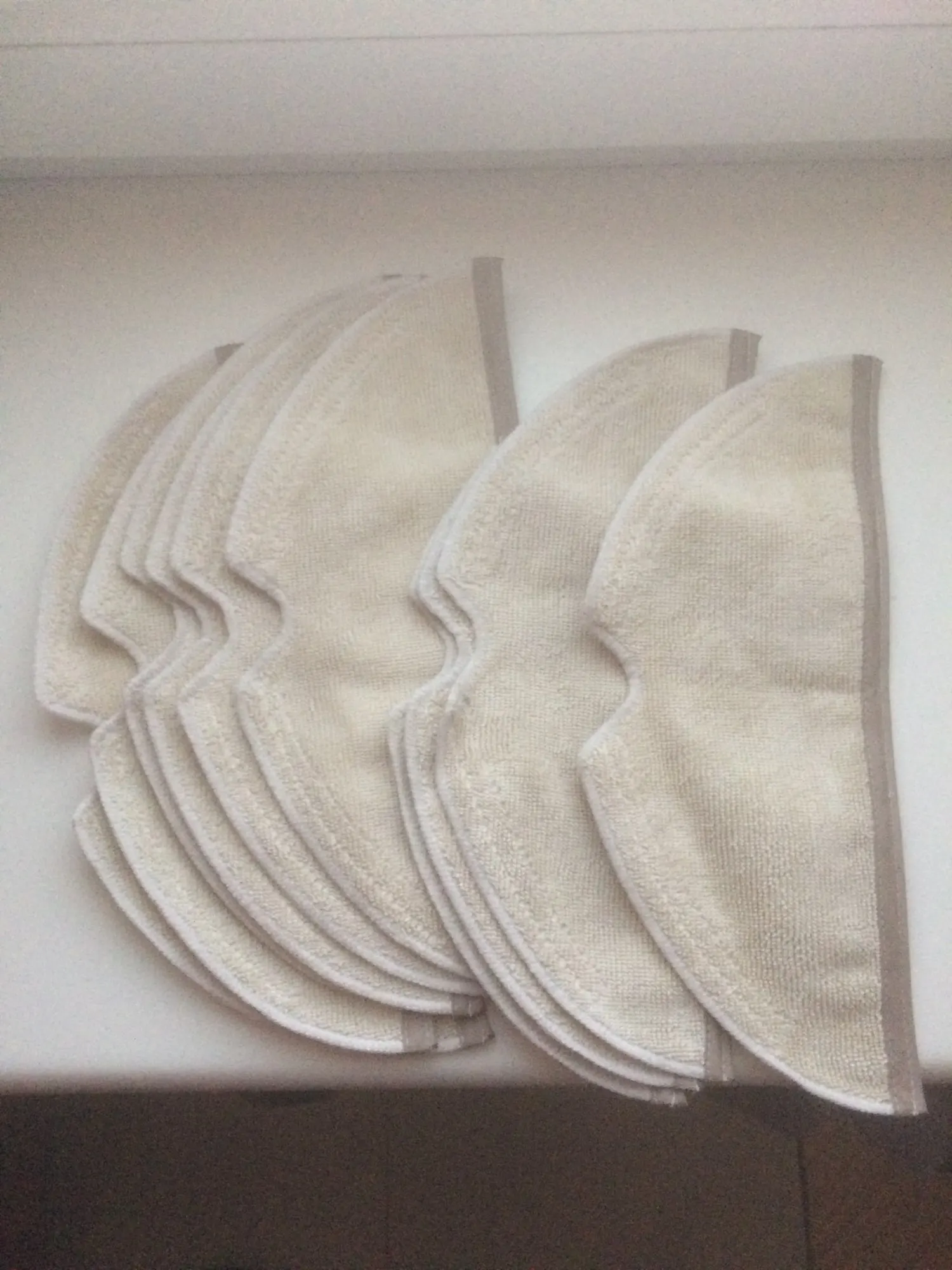 Заказывала для XiaoMi Roborock S5 Max тряпочки 12 шт, на фото оригинал слева, видно что по размеру отличается, но не сильно. В работе очень даже хорошие, не вижу смысла заказывать оригинальные в 2 раза дороже. В Украину доставка 3 недели.