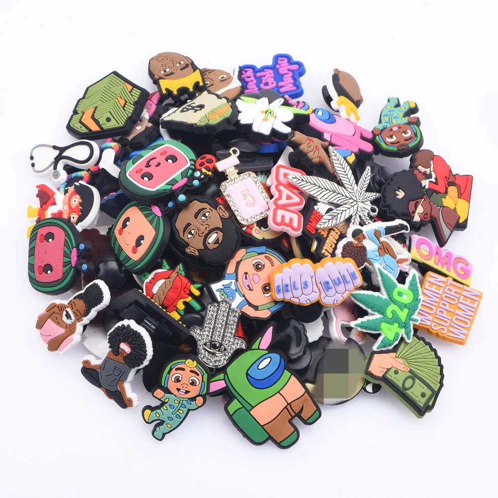 100 шт.компл. рандомные аксессуары из ПВХ для девочек, аксессуары для подарков, украшения, смешанные стили, Очаровательная вязаная Пряжка для детей, для рождевечерние