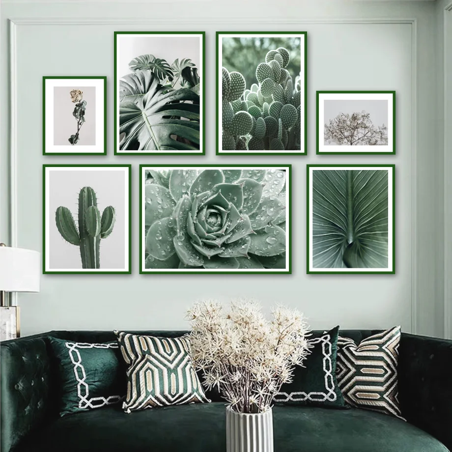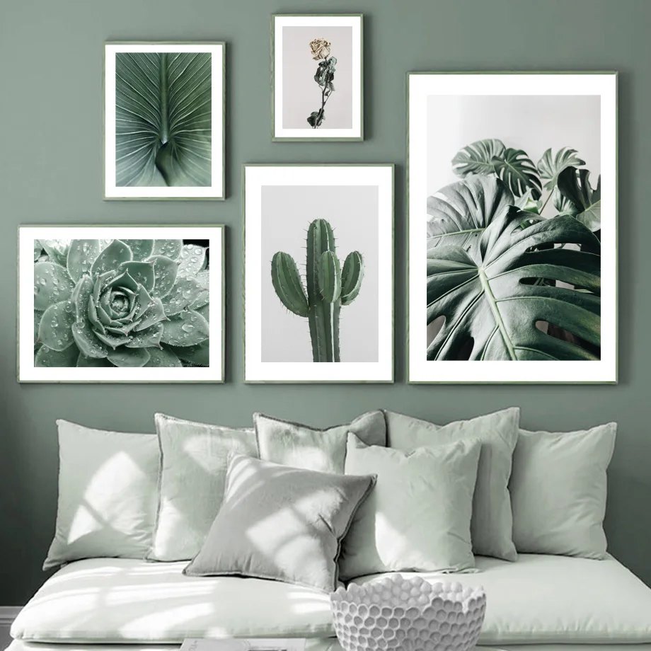 Настенная картина с изображением банановых листьев суккулентов зеле...