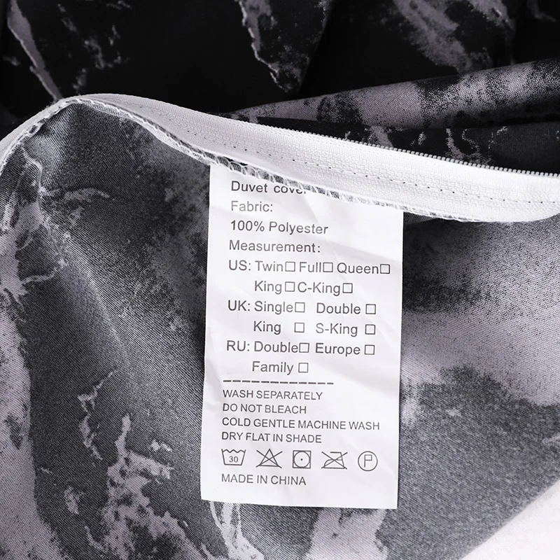 US-Twin(2 шт.) = пододеяльник: 168*229 см * 1, наволочка чехол: 50*75*1;США (3 шт.) = пододеяльник: 200*230 см * 1, наволочки: 50*75*2;US-Queen(3 шт.) = пододеяльник: 228*228 см * 1, наволочки: 50*75*2;US- King(3 шт.) = пододеяльник: 260*230 см * 1, наволочки: 50*90*2;Европейский (2 шт.) = пододеяльник: 135*200 см * 1, чехол для подушки: 50*75*1;Европейский двойной (3 шт.) = пододеяльник: 200*200 см * 1, наволочки: 50*75*2;EU-AU-King(3 шт.) = пододеяльник: 240*220 см * 1, наволочки: 50*75*2;AU-Single(2 шт.) = пододеяльник: 150*200 см * 1, наволочка чехол: 50*75*1;AU-Double(3 шт.) = пододеяльник: 180*210 см * 1, наволочки: 50*75*2;AU-Queen(3 шт.) = пододеяльник: 210*210 см * 1, наволочки: 50*75*2;