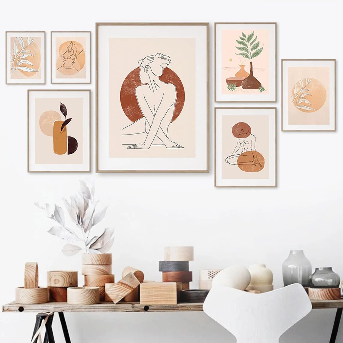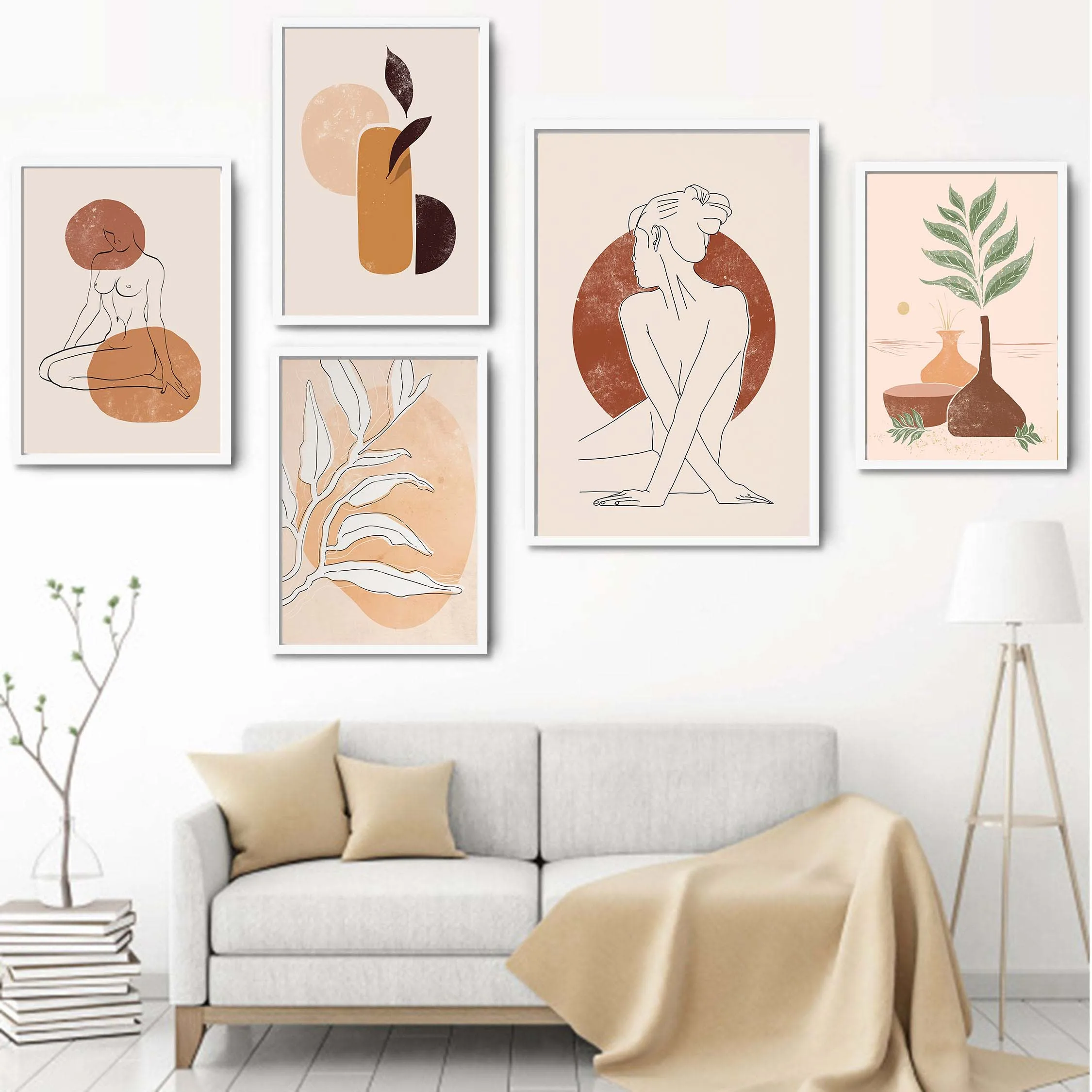 Сексуальная линия, Женская абстрактная ваза с листьями растений, настенная живопись на холсте, скандинавские постеры и принты, настенные картины для декора гостиной