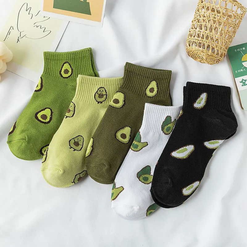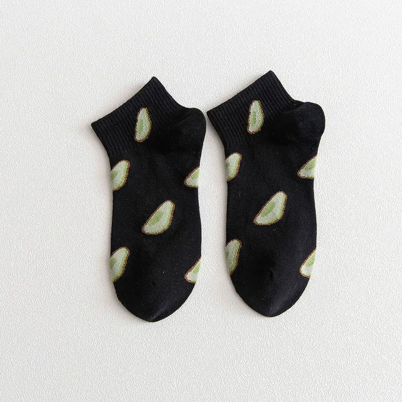 Носки женские Короткие хлопковые в японском стиле, милые повседневные, с мультяшным принтом фруктов, авокадо, короткие, летние