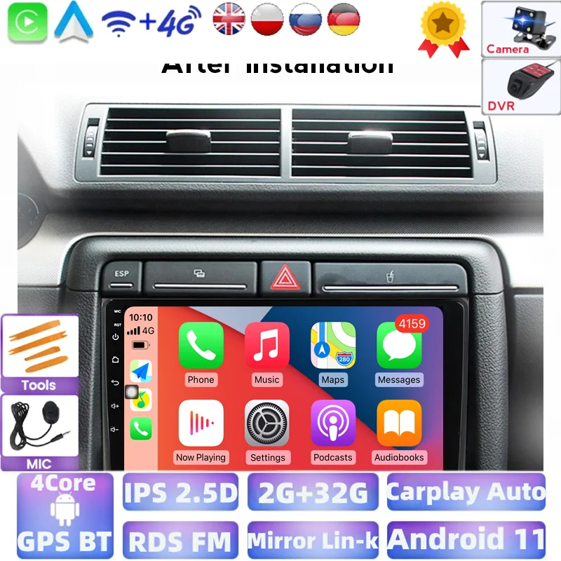 Автомагнитола на Android, с IPS-экраном, мультимедийным видеопроигрывателем, авто стерео, GPS для Audi A4 B6, 2000, 2001, 2002, 2003, 2004-2009, S4, RS4, 2din