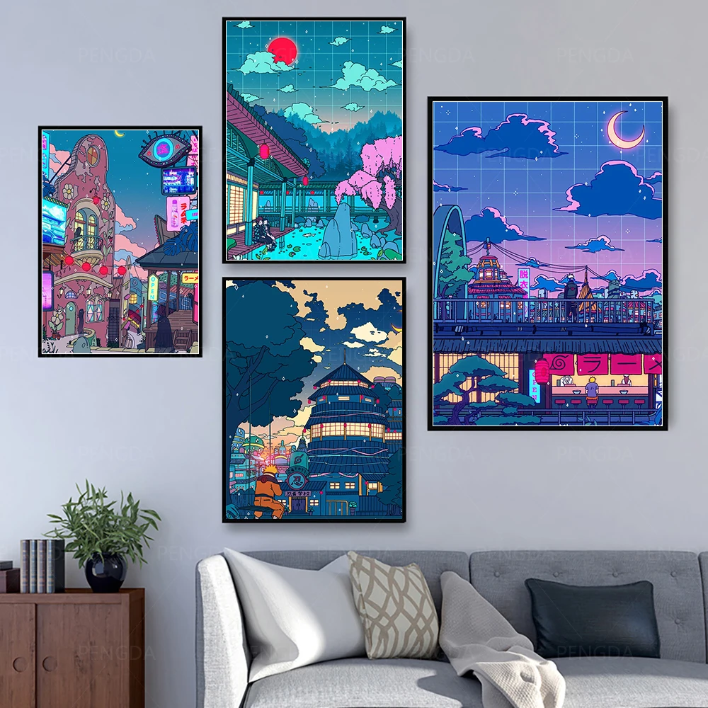 Картина на холсте, Настенная картина с изображением героев мультфильмов, улицы, постер, украшение для дома, ночное дерево, милая картина для спальни, модульная рамка для картин