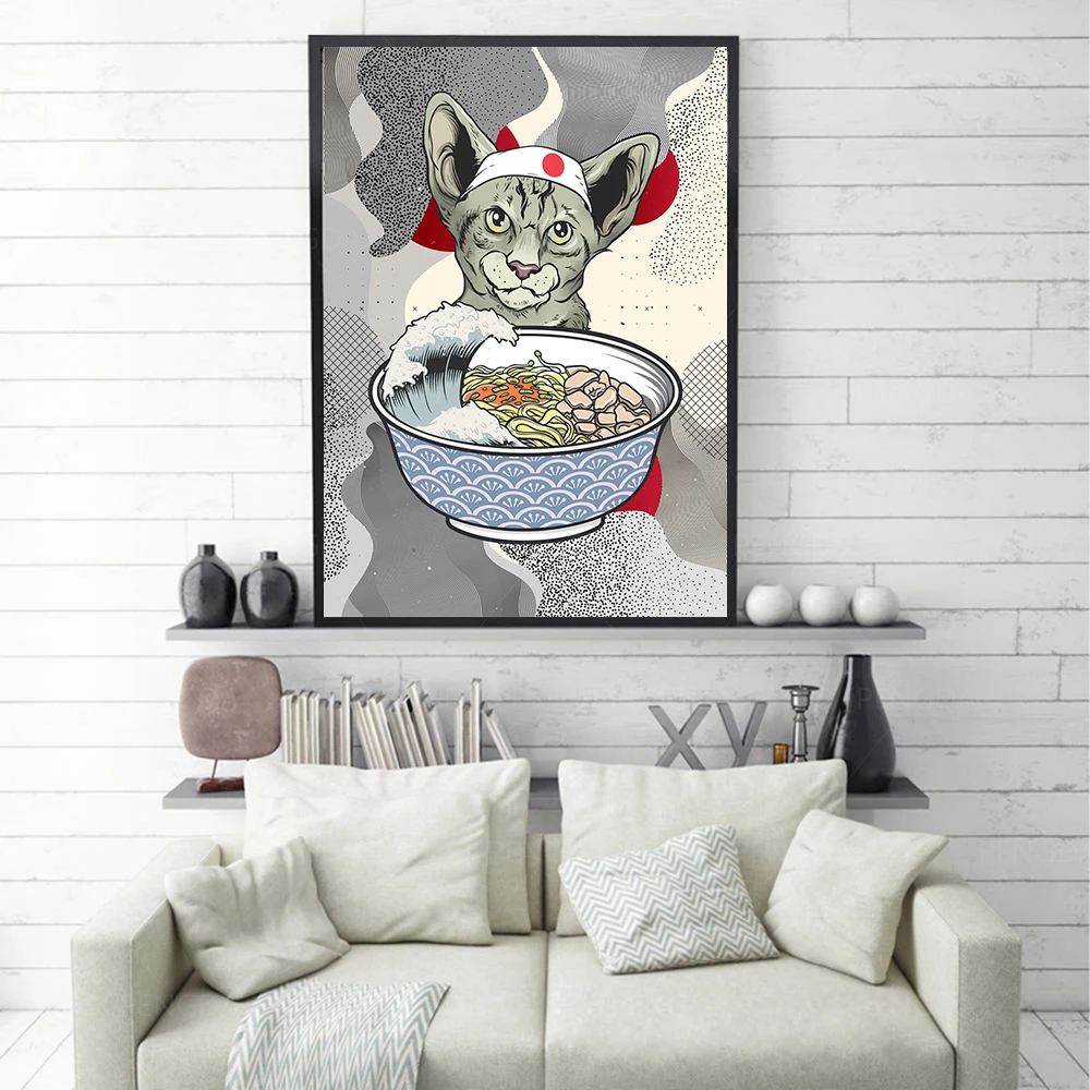 Wall Art HD принты с персонажами из мультфильмов Кот из японского мультфильма Лапша домашний декор фотографии холст Картины для Гостиная рамки картин