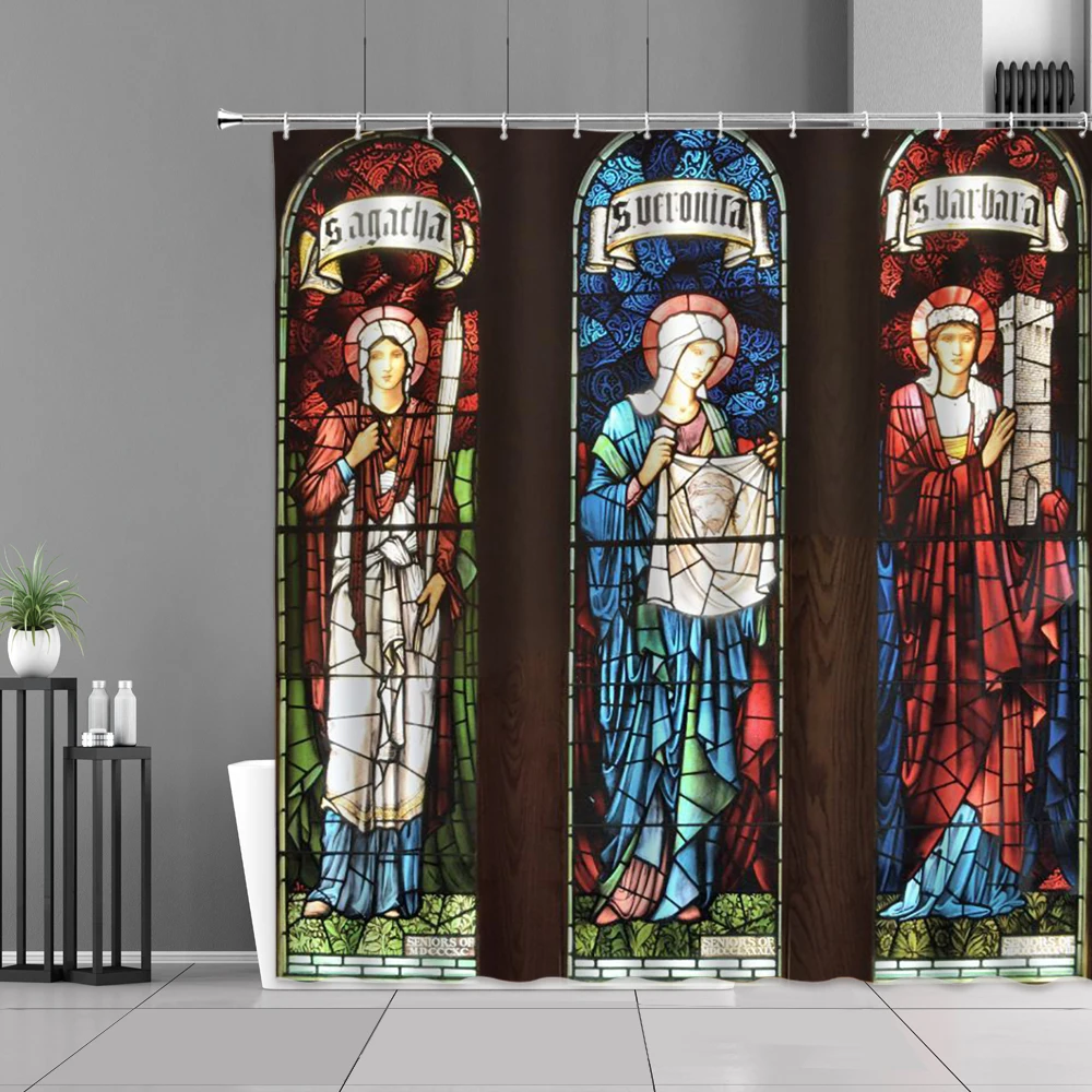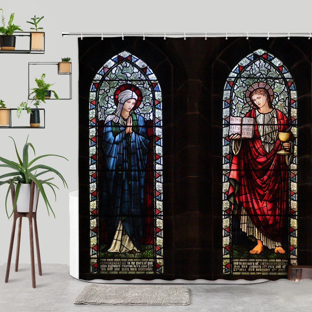 В европейском стиле для душа Водонепроницаемая занавеска в стиле ретро для церковного стекла, дворца, рыцаря