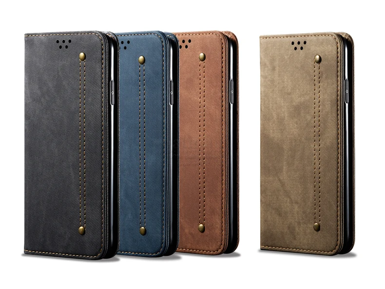 Джинсовые кожаные чехлы-бумажники для Xiaomi Redmi Note 9, чехол с ...