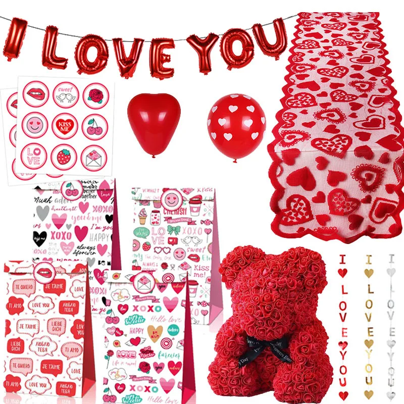 Латексный воздушный шар в форме сердца, роза, медведь, День Святого Валентина, Декор, декор для свадьбы и помолвки, невеста, розовый подарочный пакет