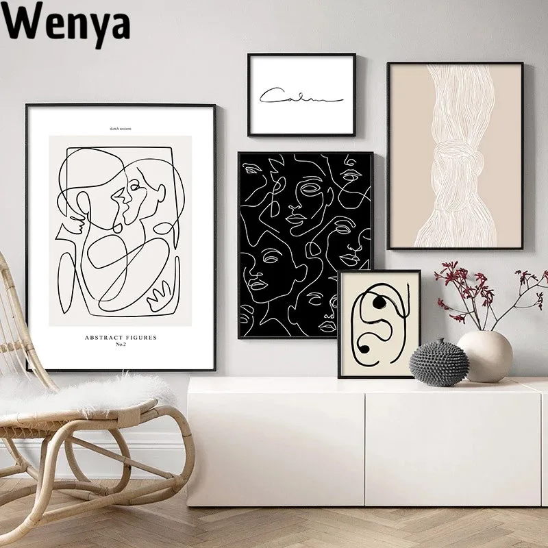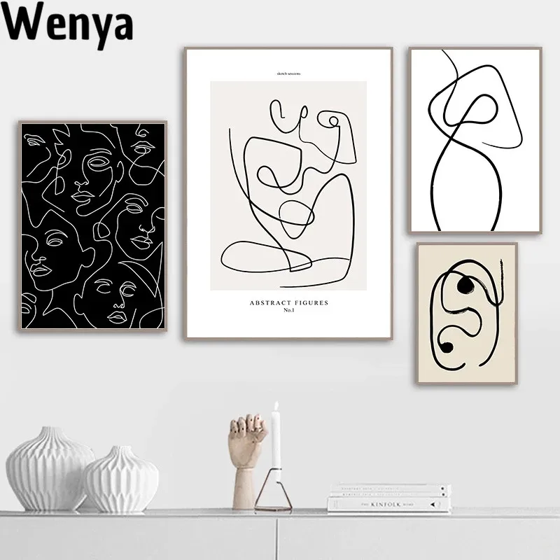 Абстрактная линия холст черно-белая стена искусство минимализм печать картина в скандинавском стиле женщина боди Картина Современный декор гостиной