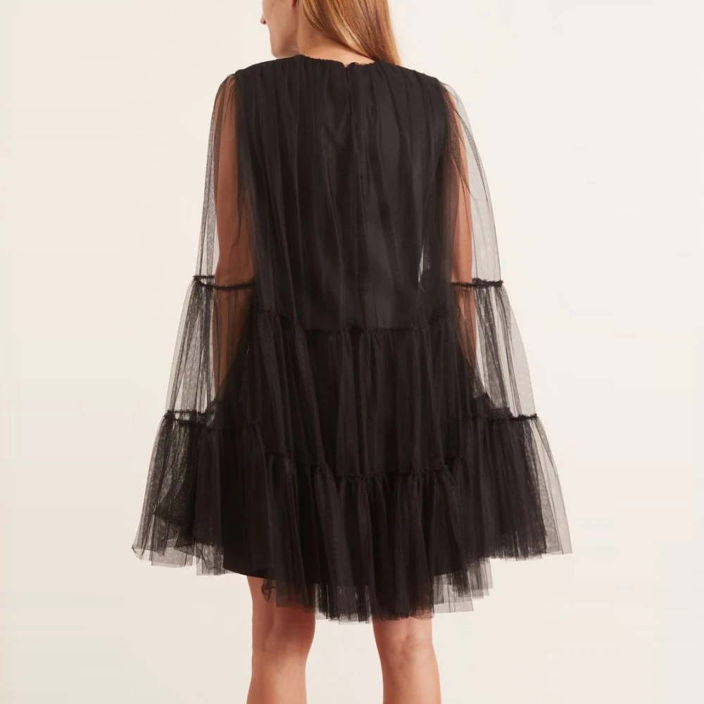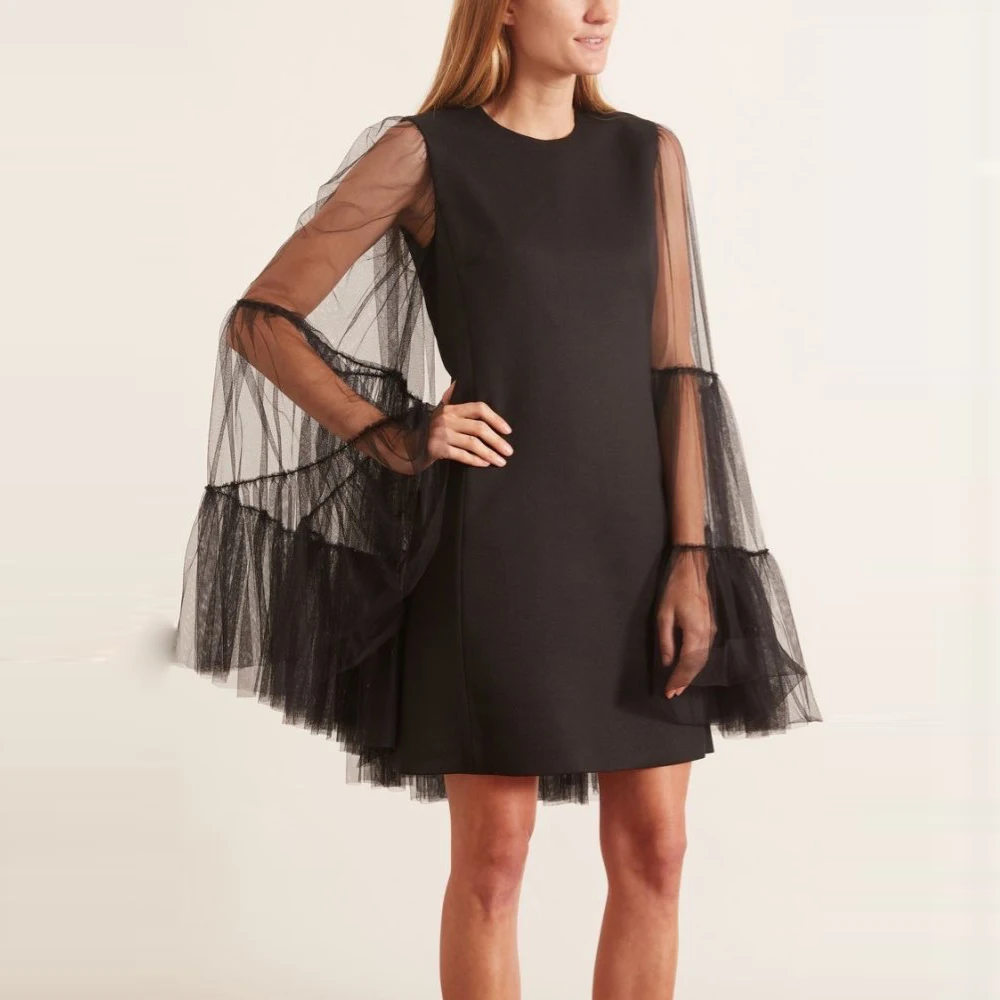 Женское Короткое платье-трапеция, черное Тюлевое платье с длинным рукавом и накидкой, а-силуэт, для вечеринки, дня рождения