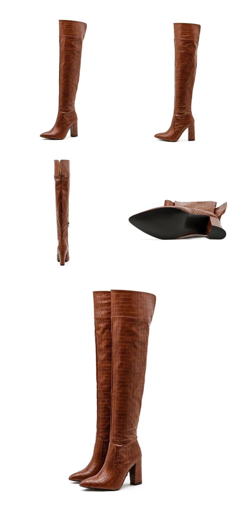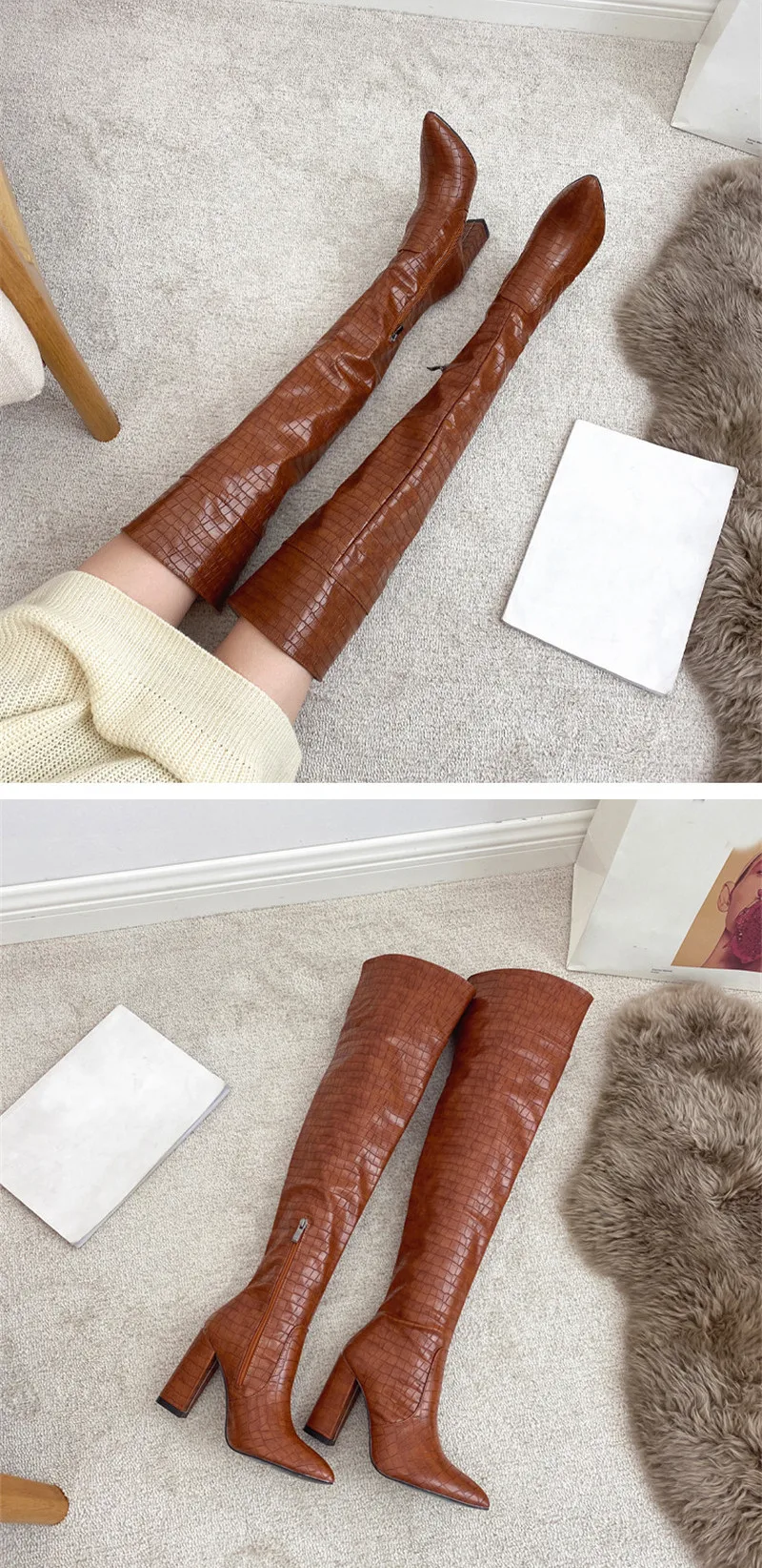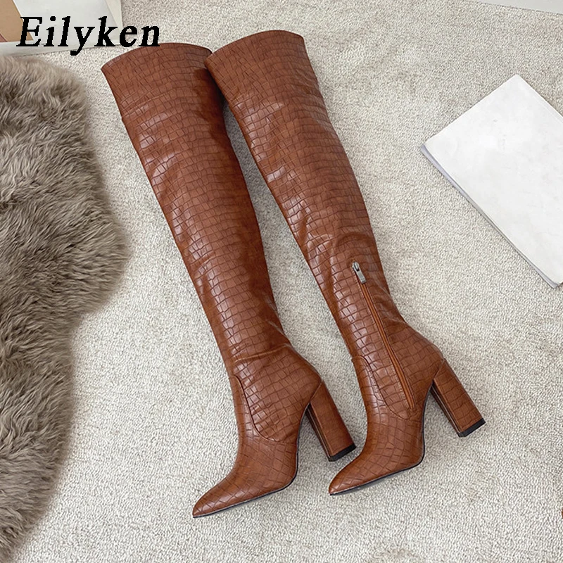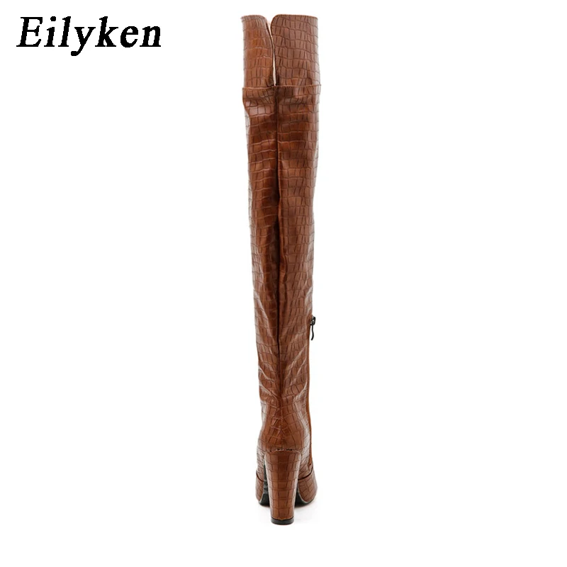 Женские сапоги из микрофибры Eilyken, с тиснением, на высоком каблуке, дизайнерские Высокие Сапоги выше колена, 2022