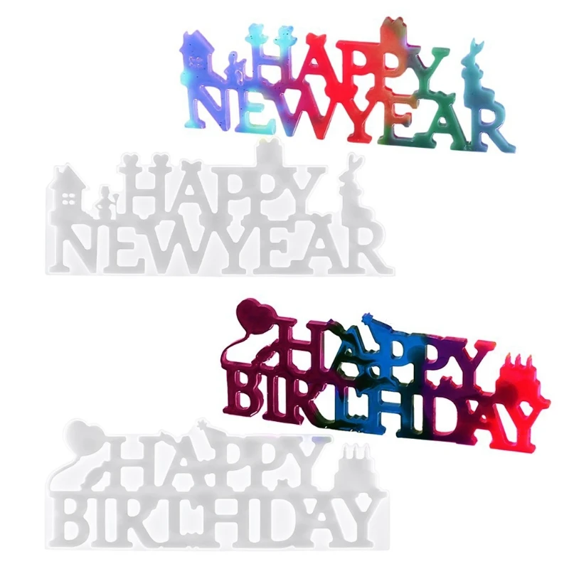 DIY с днем рождения с новым годом литья смолы формы 2021 хорошие пожелания новый год буквы силиконовые формы Искусство ремесло инструменты