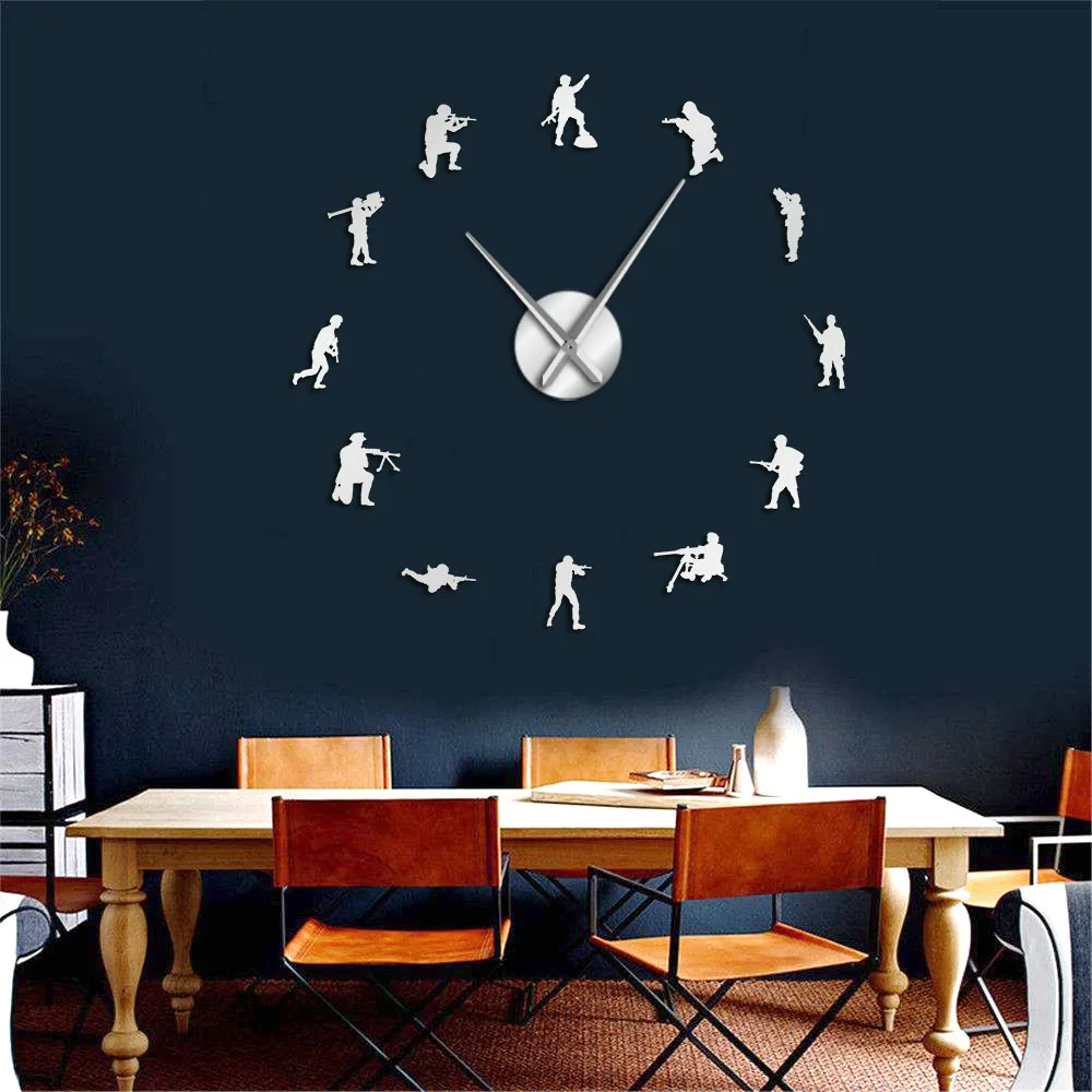 Военные наклейки на стену сделай сам, большие настенные часы с боевыми мотивами, домашний декор без рамки, подарок на день независимости
