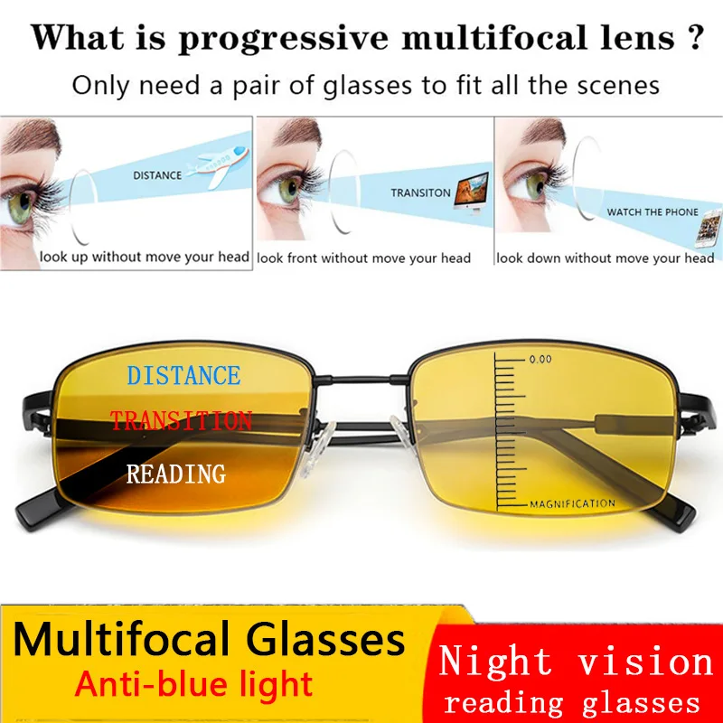 Новые очки для чтения ночного видения с прогрессивным мультифокусны...