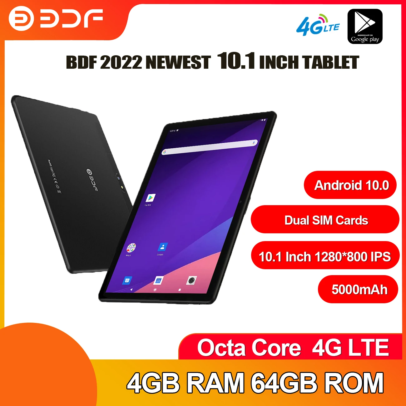 Планшет 4G LTE Pro на Android 10,1, экран 10,0 дюйма, Восьмиядерный процессор, ОЗУ 4 Гб, ПЗУ 64 Гб, поддержка Google Play, GPS, Wi-Fi, Bluetooth