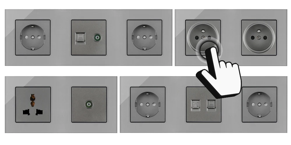 16A штепсельная вилка европейского стандарта Мощность настенной розетки двойной тройной четверной гнездо серебристо-серый Стекло рамка Россия Испания 86 146 172 258 344 Тип розетки
