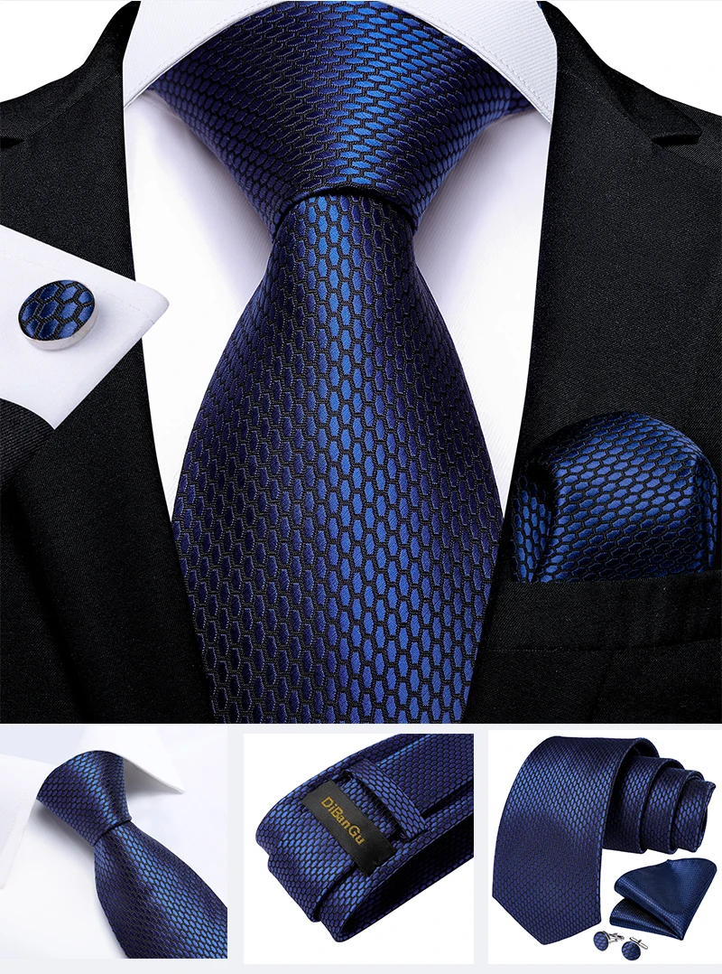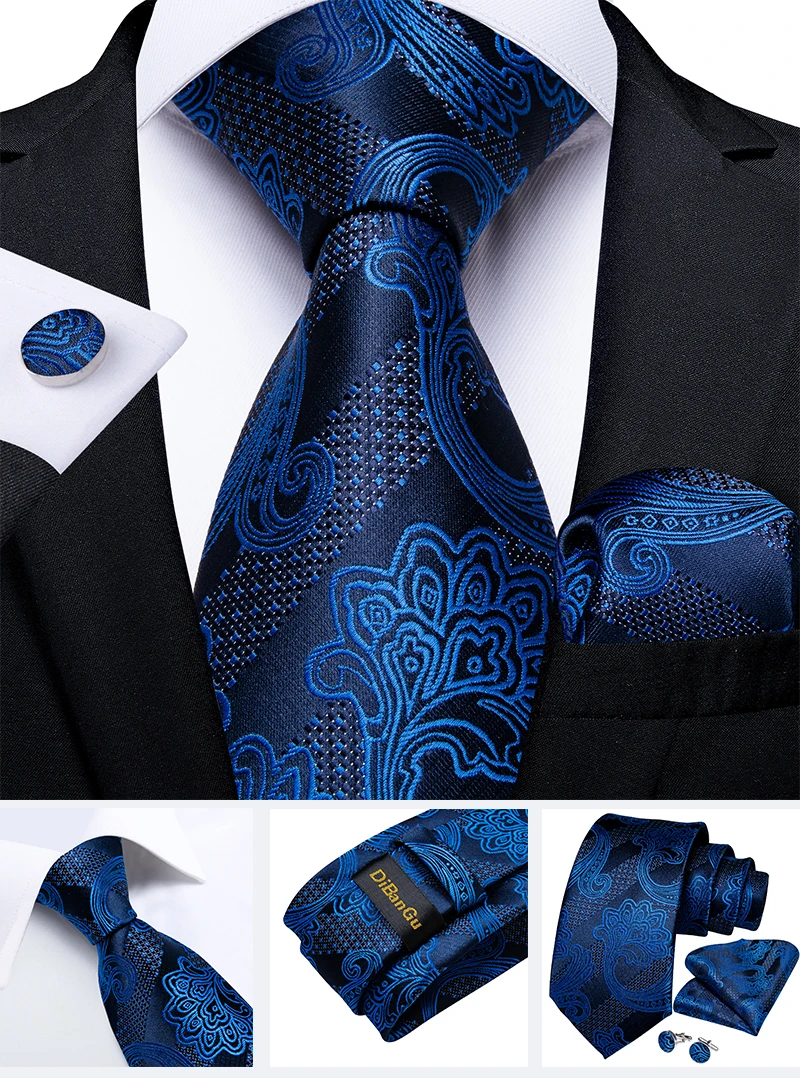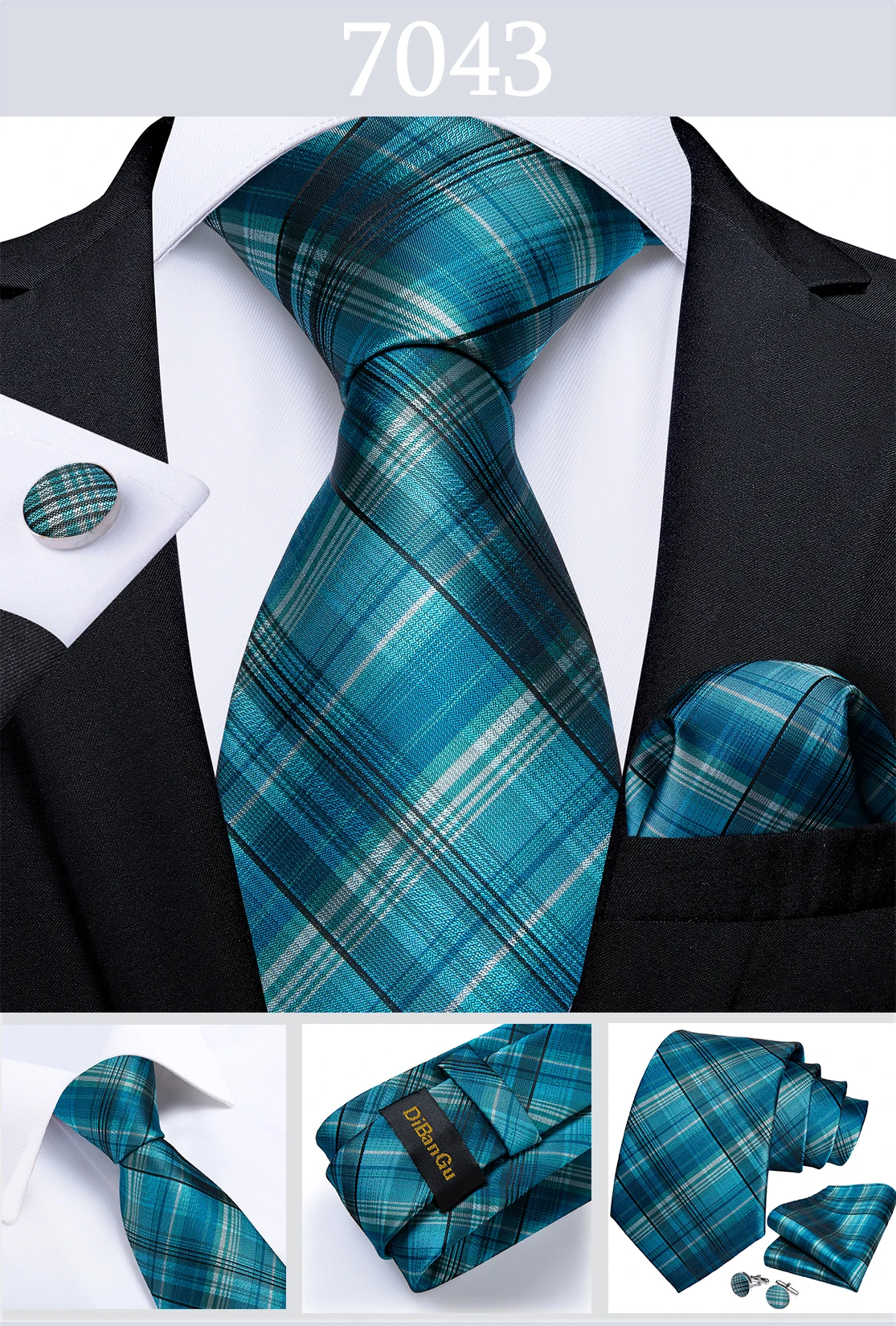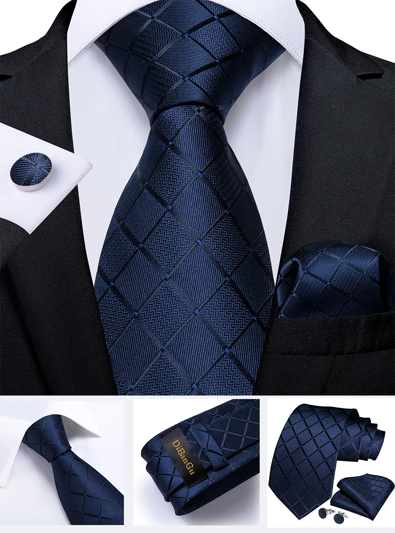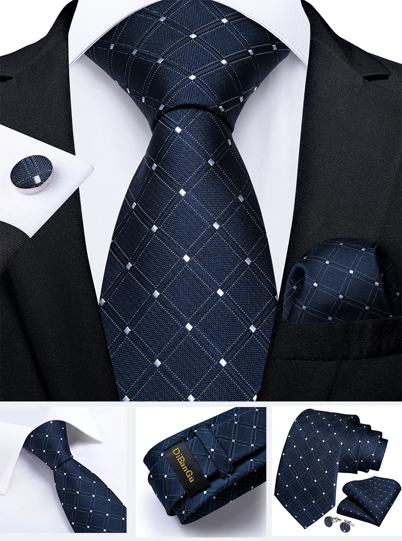 Новый Классический 100% шелк мужской галстук 8 см синий клетка, горошек Полосатый деловой ГАЛСТУК носовой платок Свадебная вечеринка галстук набор Gravatas DiBanGu