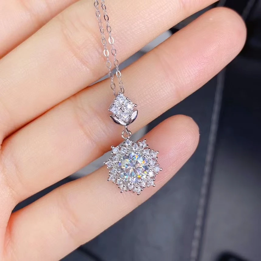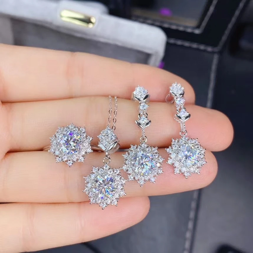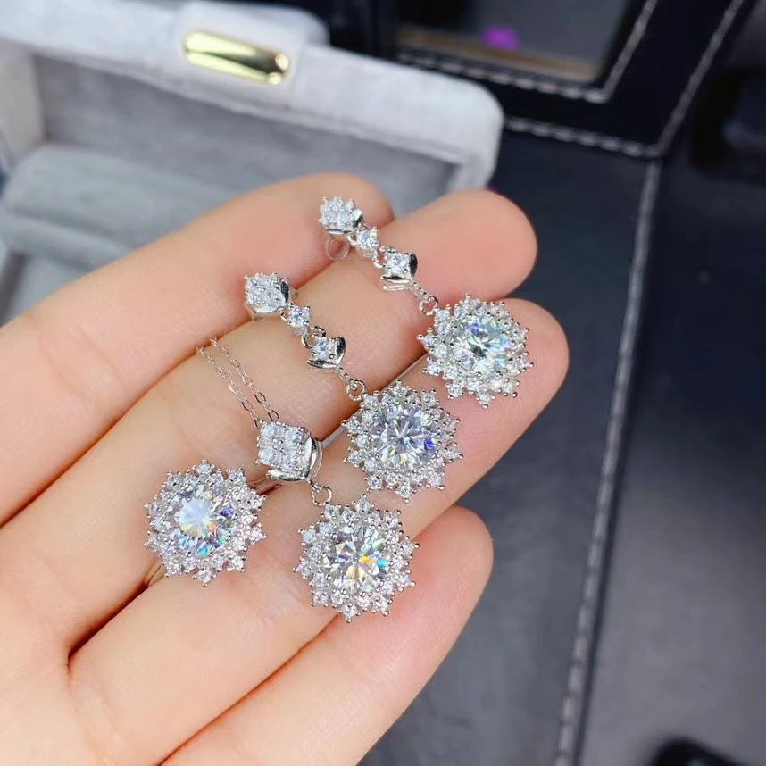 MeiBaPJ 1 карат белый Муассанит цветок комплект ювелирных изделий 925 серебро кольцо серьги кулон 3 шт. костюмы Свадебные украшения для женщин