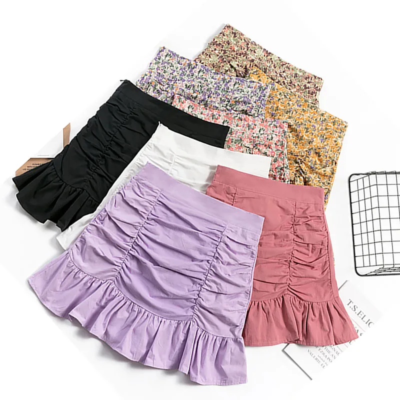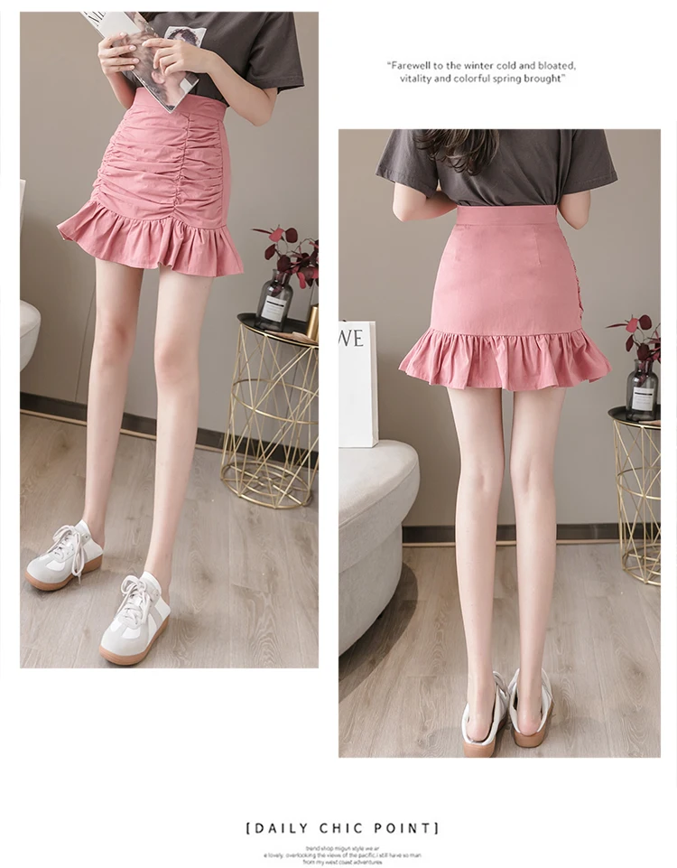 Женская юбка с оборками Shintimes, повседневная трапециевидная юбка в стиле ампир, однотонная женская одежда, 2021