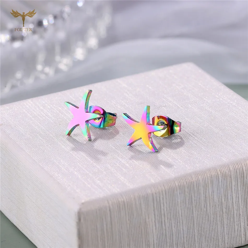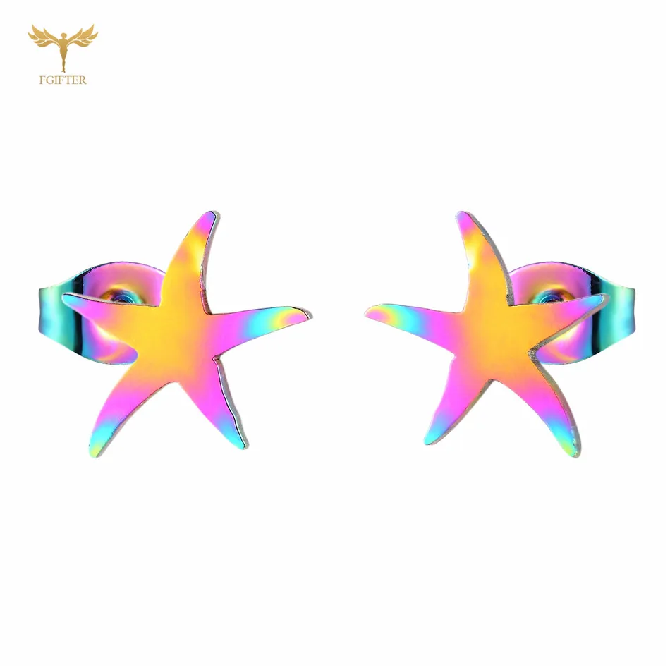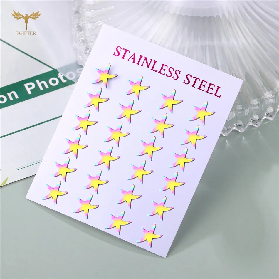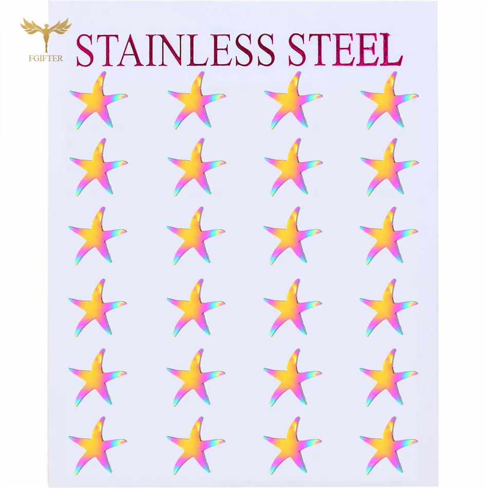 2021 Симпатичные серьги-гвоздики для девочек, цветные серьги в виде морской звезды, модные ювелирные изделия из нержавеющей стали, оптовая продажа, 12 пар
