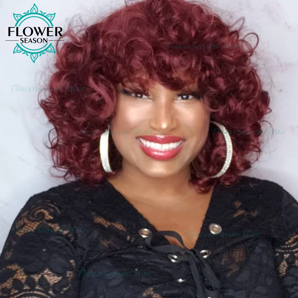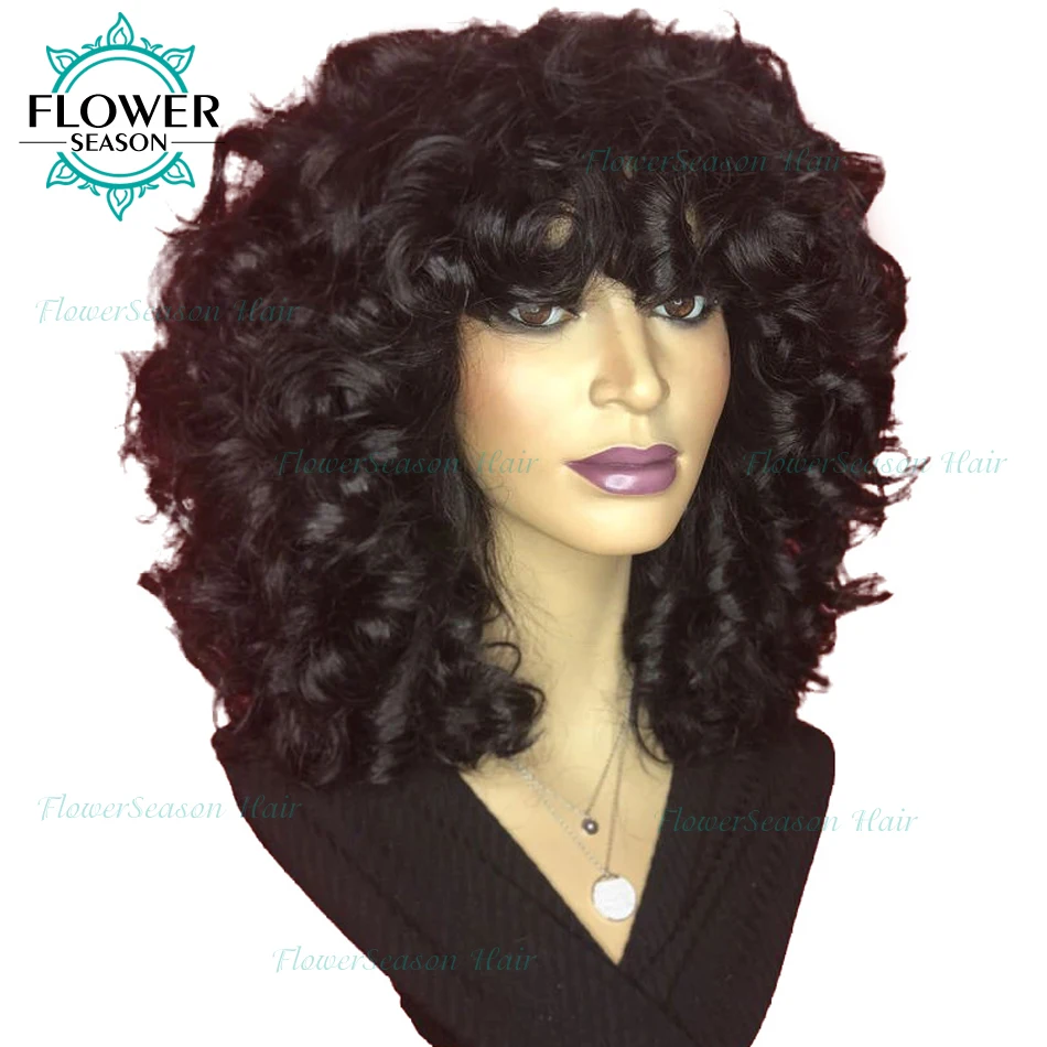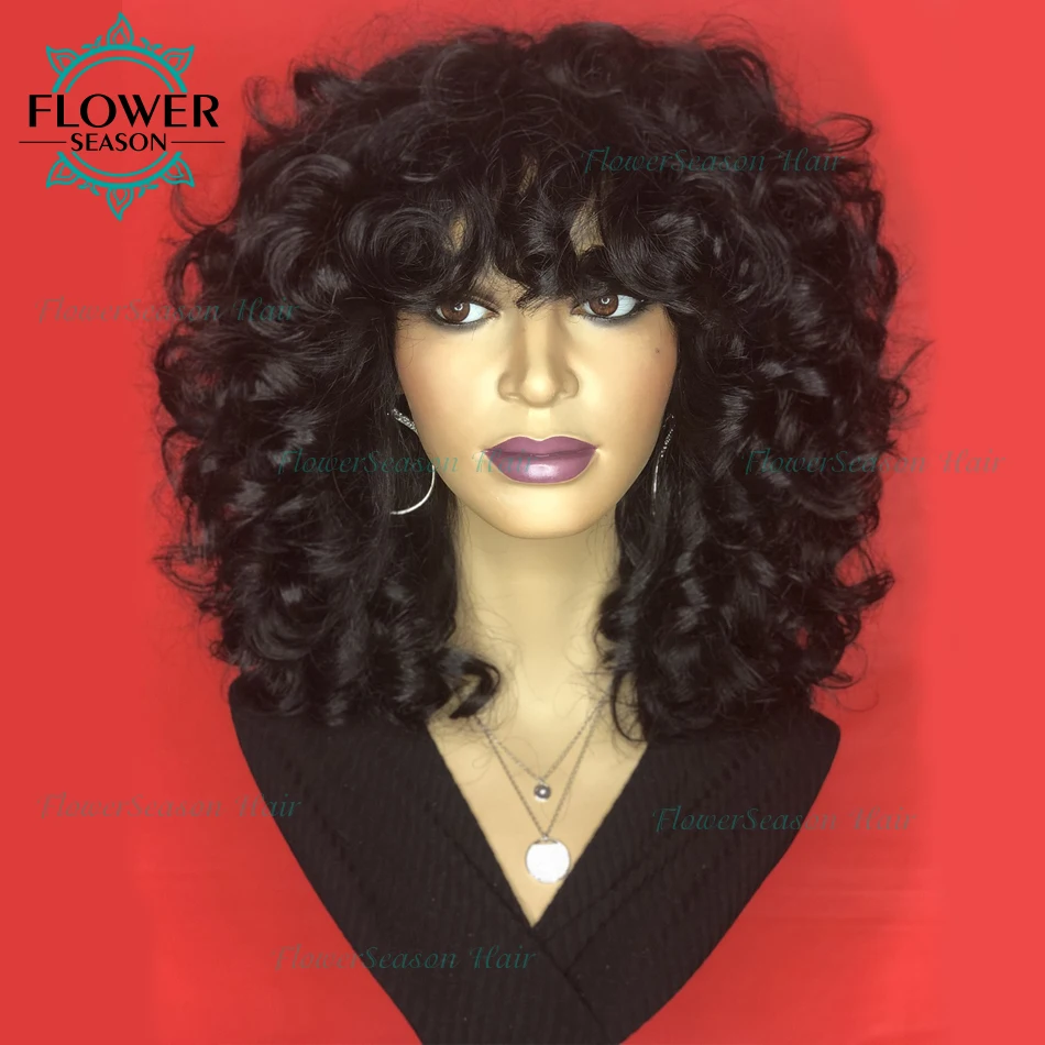 Кудрявые человеческие волосы парик с челкой Цвет волос: натуральный цвет Плотность волос: 150% 180% 200% Размер шапки: средний размер по умолчанию (если вы хотите маленький или большой колпачок, оставьте нам сообщение) Цвет крышки: Средний коричневый