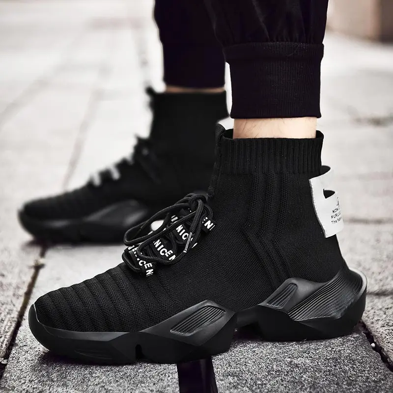 Номер моделиdesigner black knit High top base high-top summer massive big sole gym