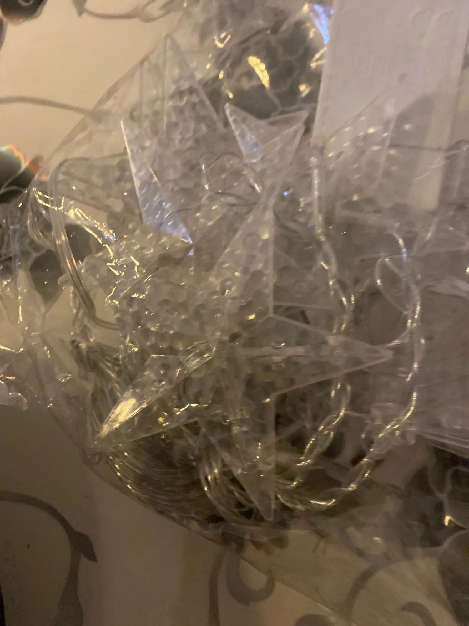 Гирлянда светит хорошо, есть несколько режимов. Провод длинный, через всю комнату можно протянуть. Но есть и минусы. Сколы, звезды кое-где разваливаются. Может на почте разбили, может сразу была такая, не знаю. Но впринципе это не так заметно, а когда горит тем более. Вообщем, надо просить продавца упаковать в несколько слоев пленки.