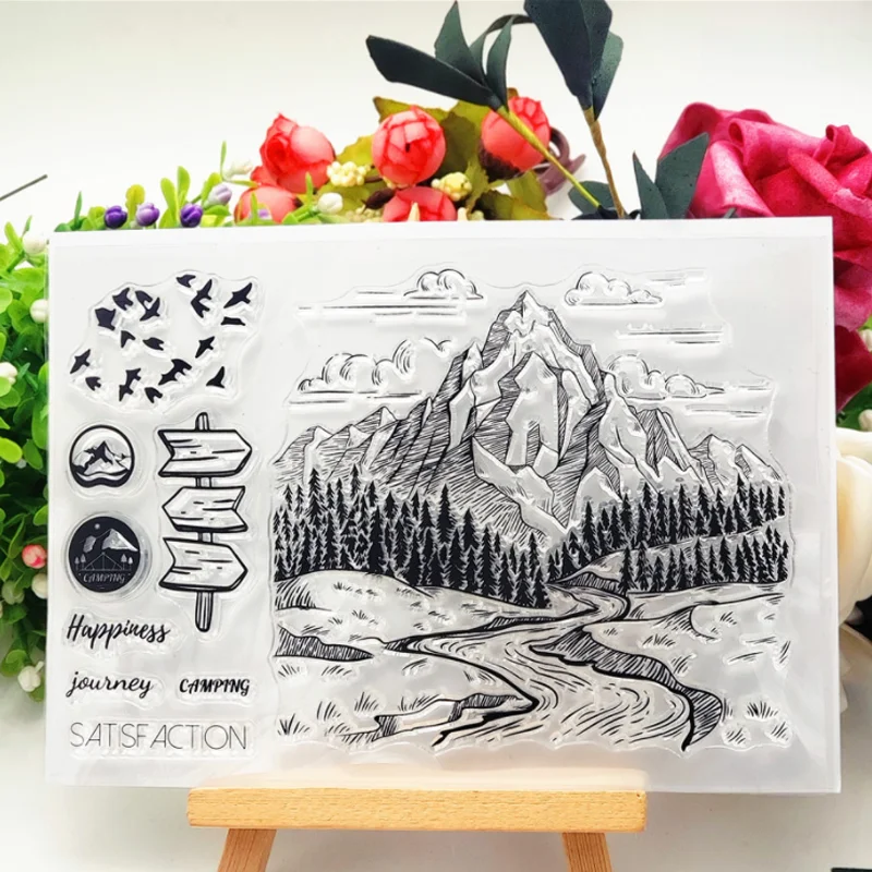 Прозрачный силиконовый штамп в виде гор, штамп для самостоятельного скрапбукинга, фотоальбома, декоративные прозрачные штампы, листы, офисные и школьные принадлежности