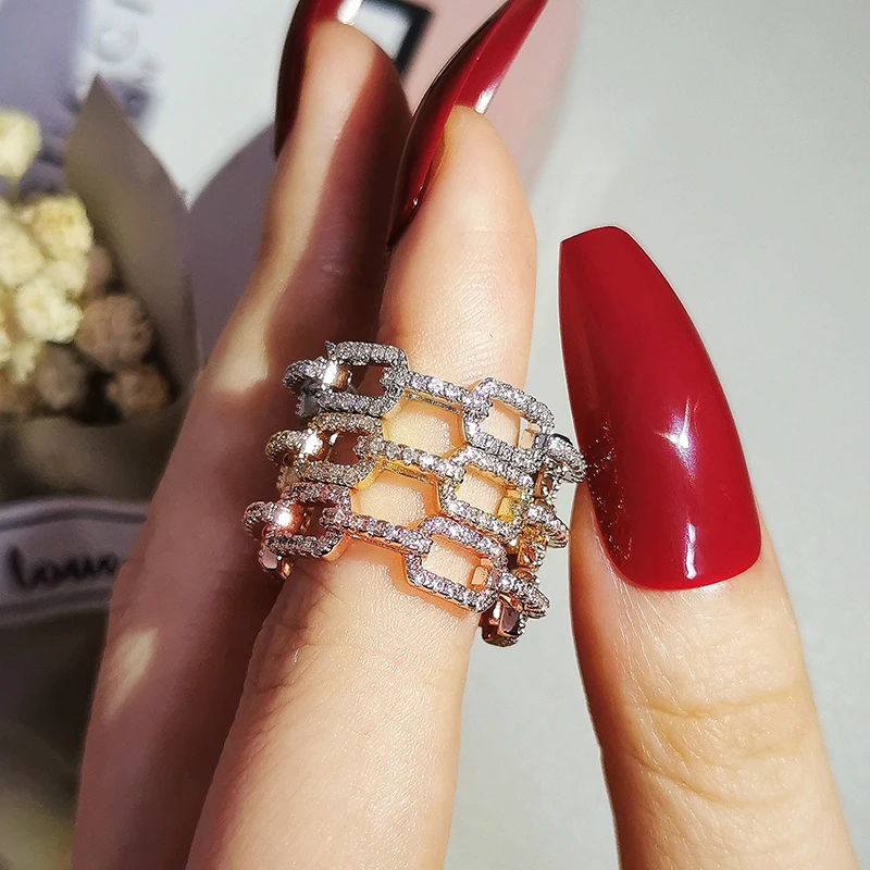 Кольцо Huitan женское, с микро вымощенными звеньями, творческая цеп...