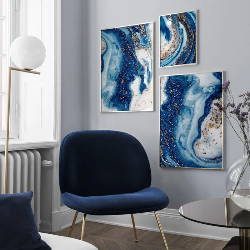 Скандинавский абстрактный роскошный постер с золотым мрамором галер...