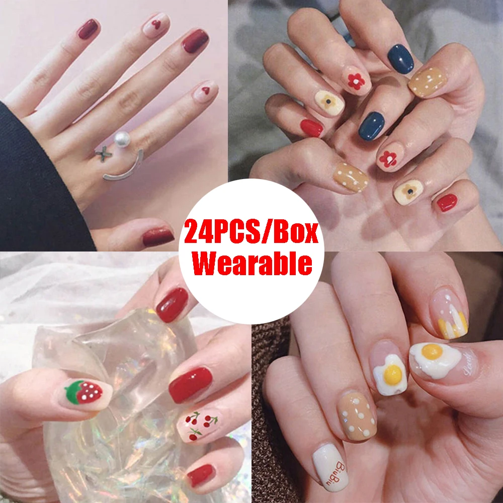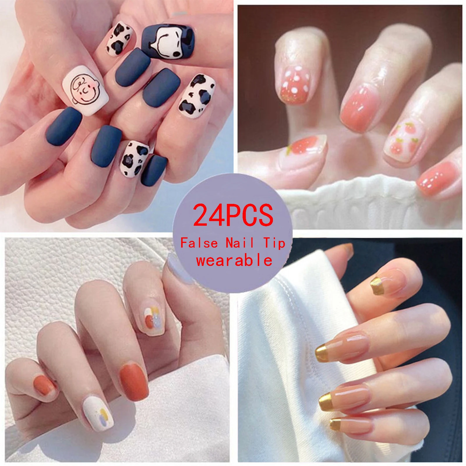 24 шт. носимые накладные ногти с круглой головкой, полное покрытие, искусственные накладные ногти, накладные ногти, пресс на ногти, Маникюрный Инструмент для самостоятельного маникюра