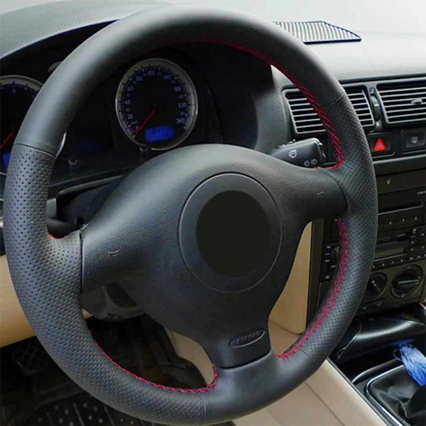 Сшитый вручную черный чехол рулевого колеса автомобиля из искусственной кожи PU для Volkswagen VW Golf 4 (IV) Passat B5 Passat вариант Polo