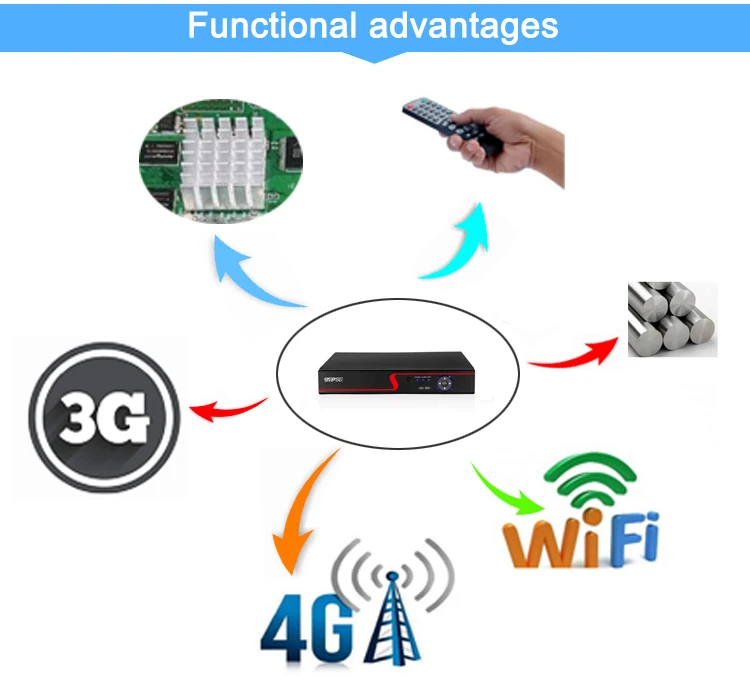 Наш видеорегистратор видеонаблюдения NVR имеет радиатор, порт Auido, металлический материал (длительный срок службы), функцию 3G(4G), функцию Wi-Fi и так далее, гарантию качества.
