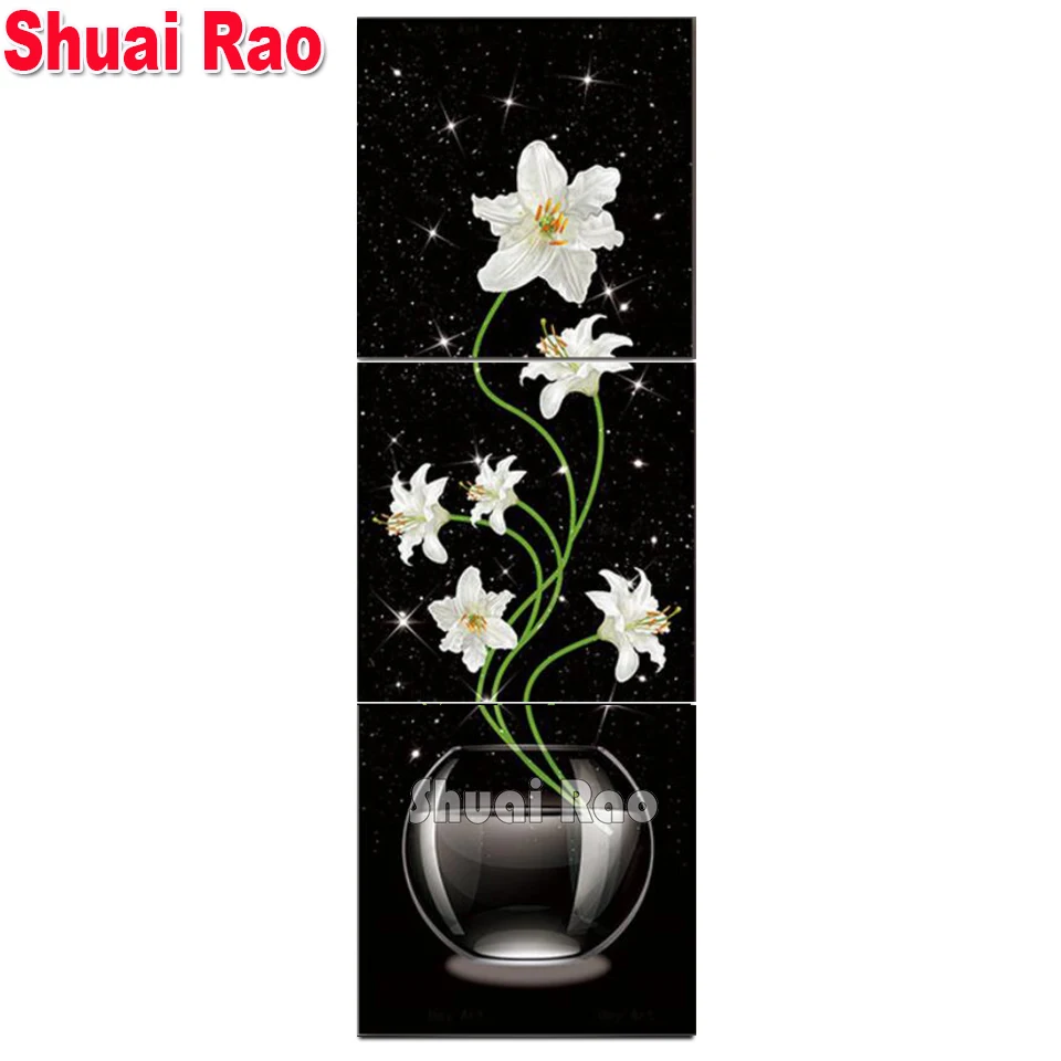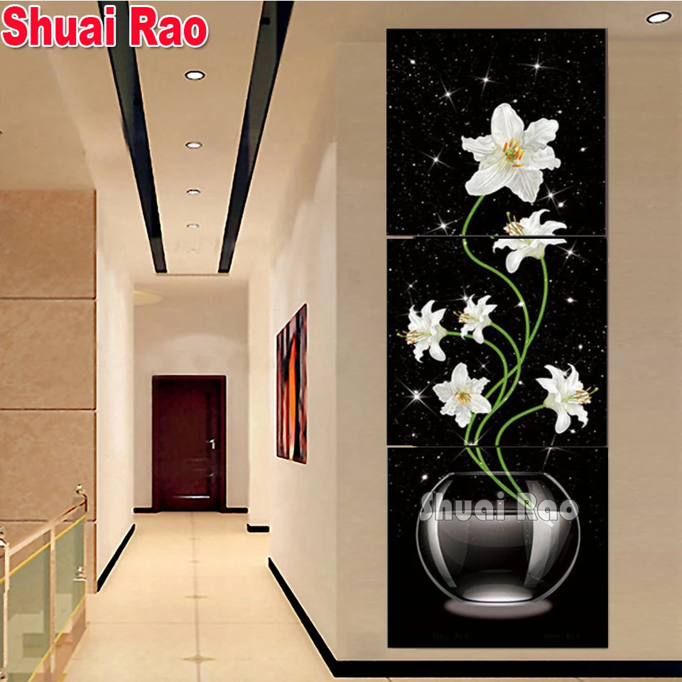 3 Панели, белый цветок лилии, полная квадратная алмазная живопись, мозаика, настенная художественная вышивка, алмазная картина для гостиной,
