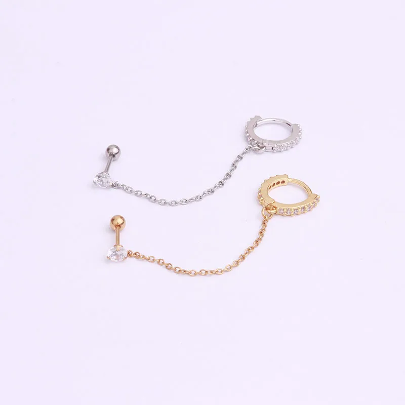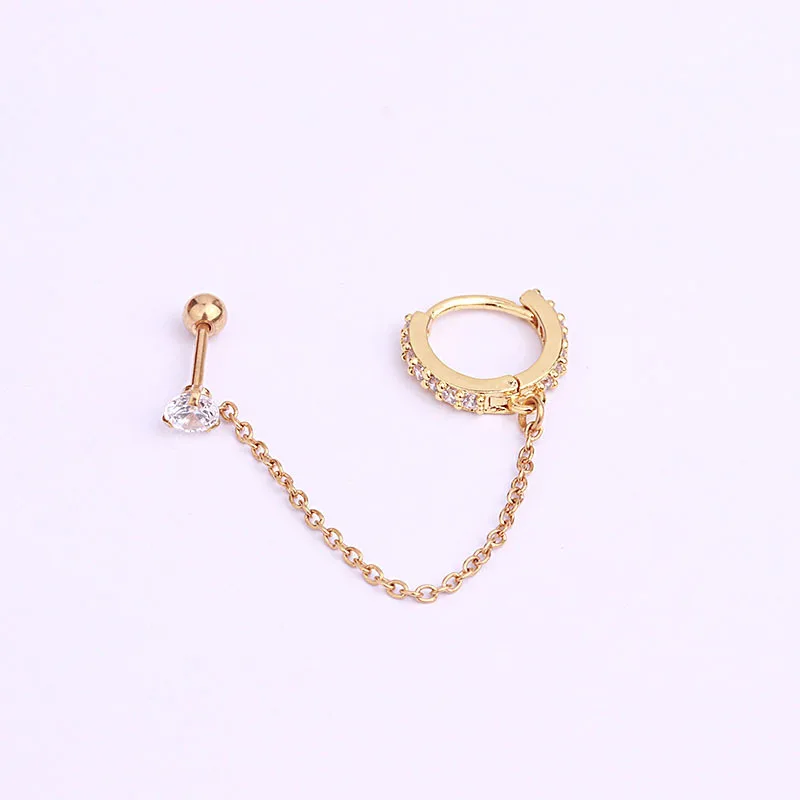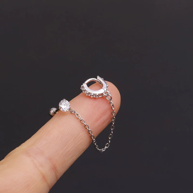 1 шт необычная двойная пирсинг на цепочке, серьги-гвоздики для женщин 2021 трендовые ювелирные изделия Диаметр 6/8 мм инкрустированные серьги из циркона оптовая продажа