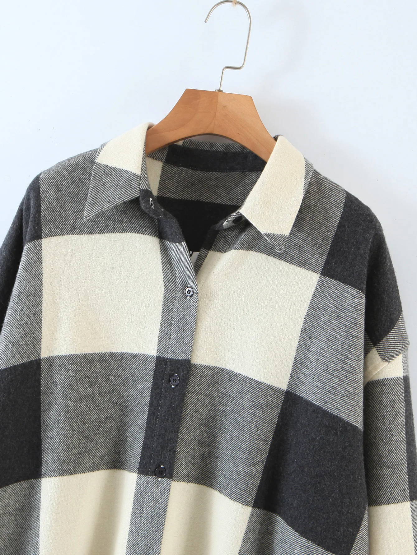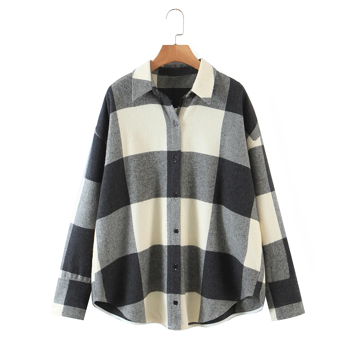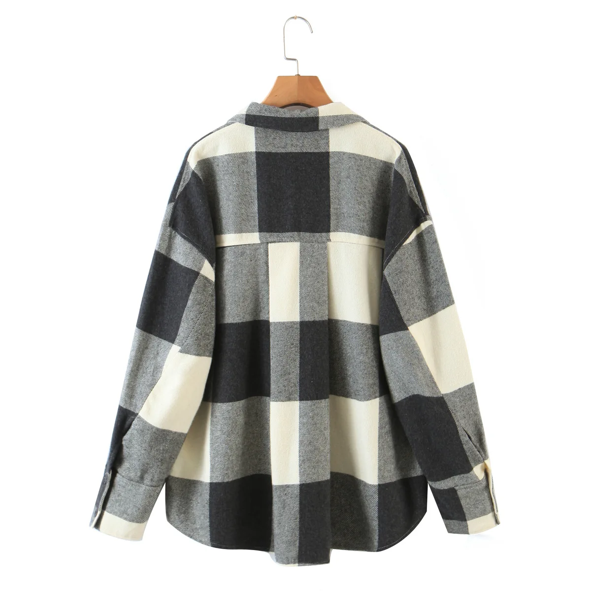 Осенне-зимняя Новая модная женская клетчатая рубашка, Клетчатая блузка с длинным рукавом, свободная шерстяная рубашка оверсайз, куртка для женщин