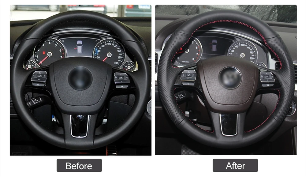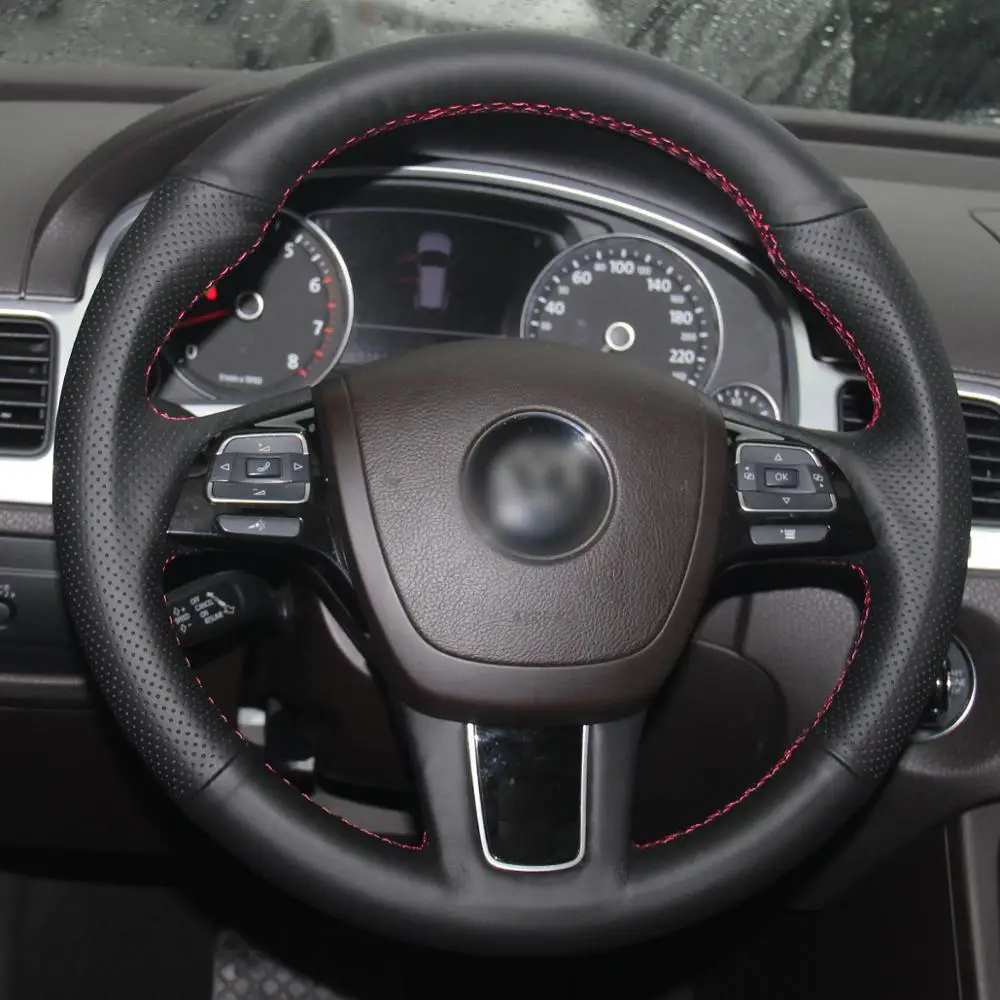 Рука сшитый черный PU Искусственная кожа Чехол рулевого колеса автомобиля для Volkswagen VW Touareg 2010 2011 2012 2013 2014 2015-2018