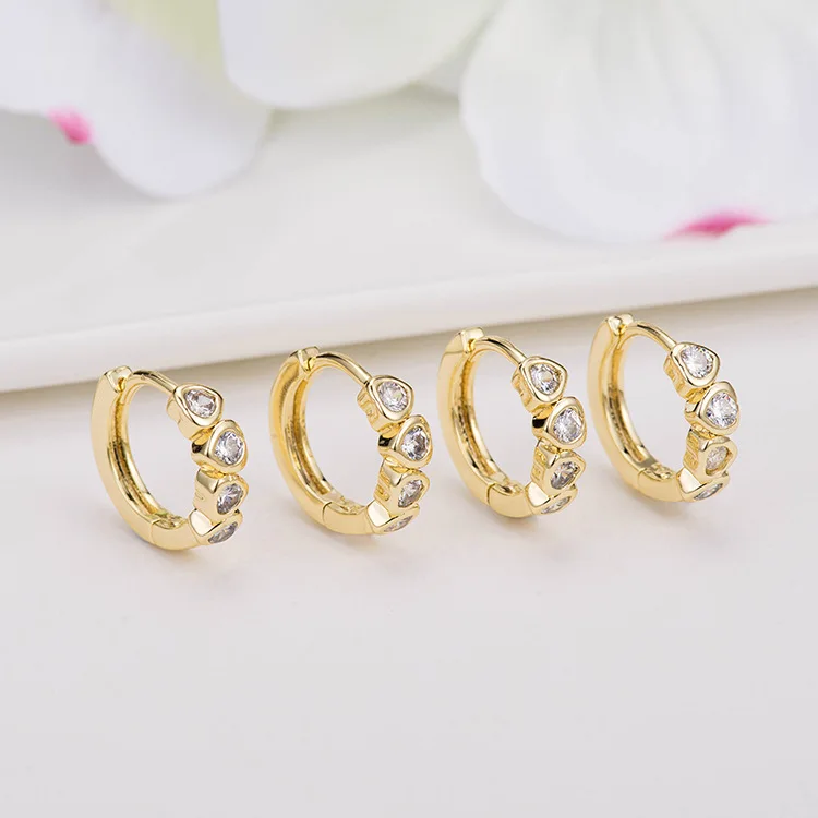 6 шт. из 14-каратного золота с Цвет латунь с Циркон Круглой формы с принтом в виде сердец и серьги обруч серьги, нержавеющая сталь, металлическим зажимом высокого качества, сделай сам, ювелирное изделие, украшения своими руками