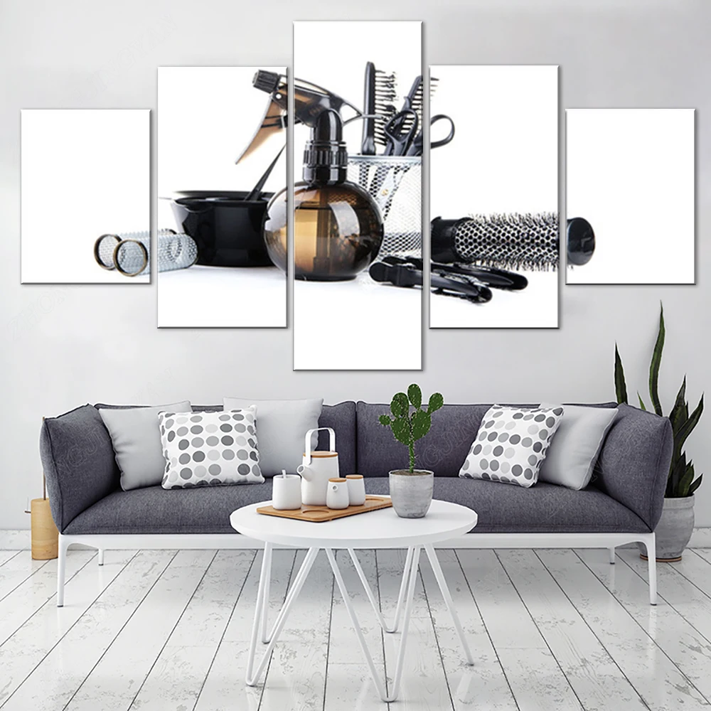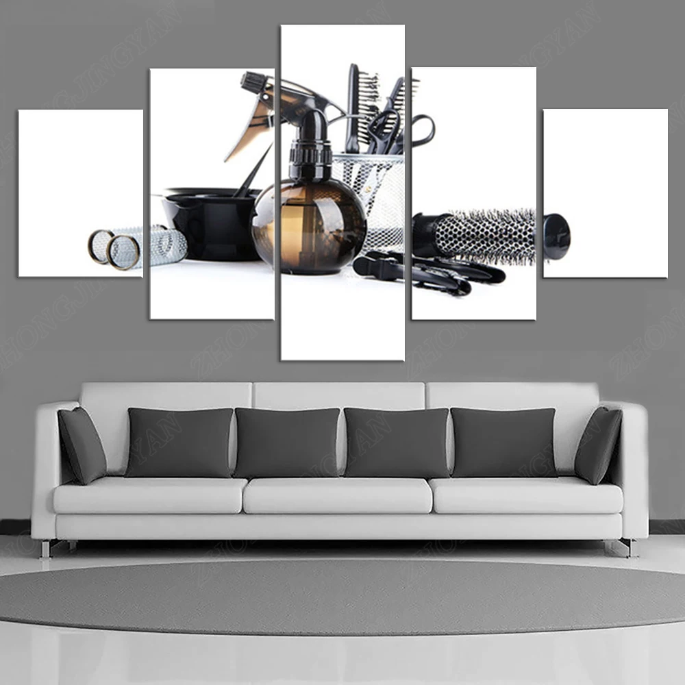 Современный парикмахерский инструмент с узором 5 панелей Холст плакат Panting картины парикмахерский Декор настенное искусство внутреннее украшение p