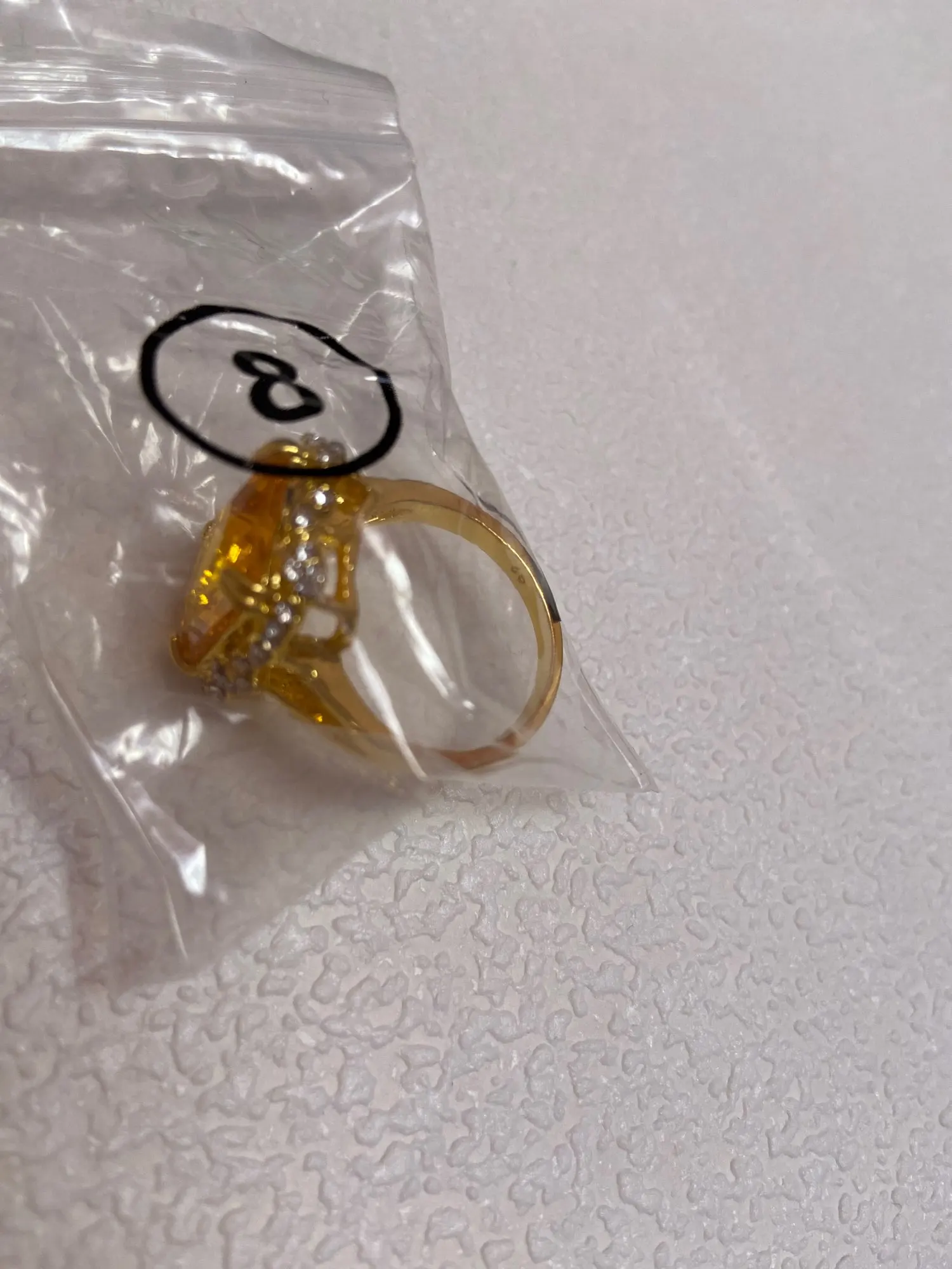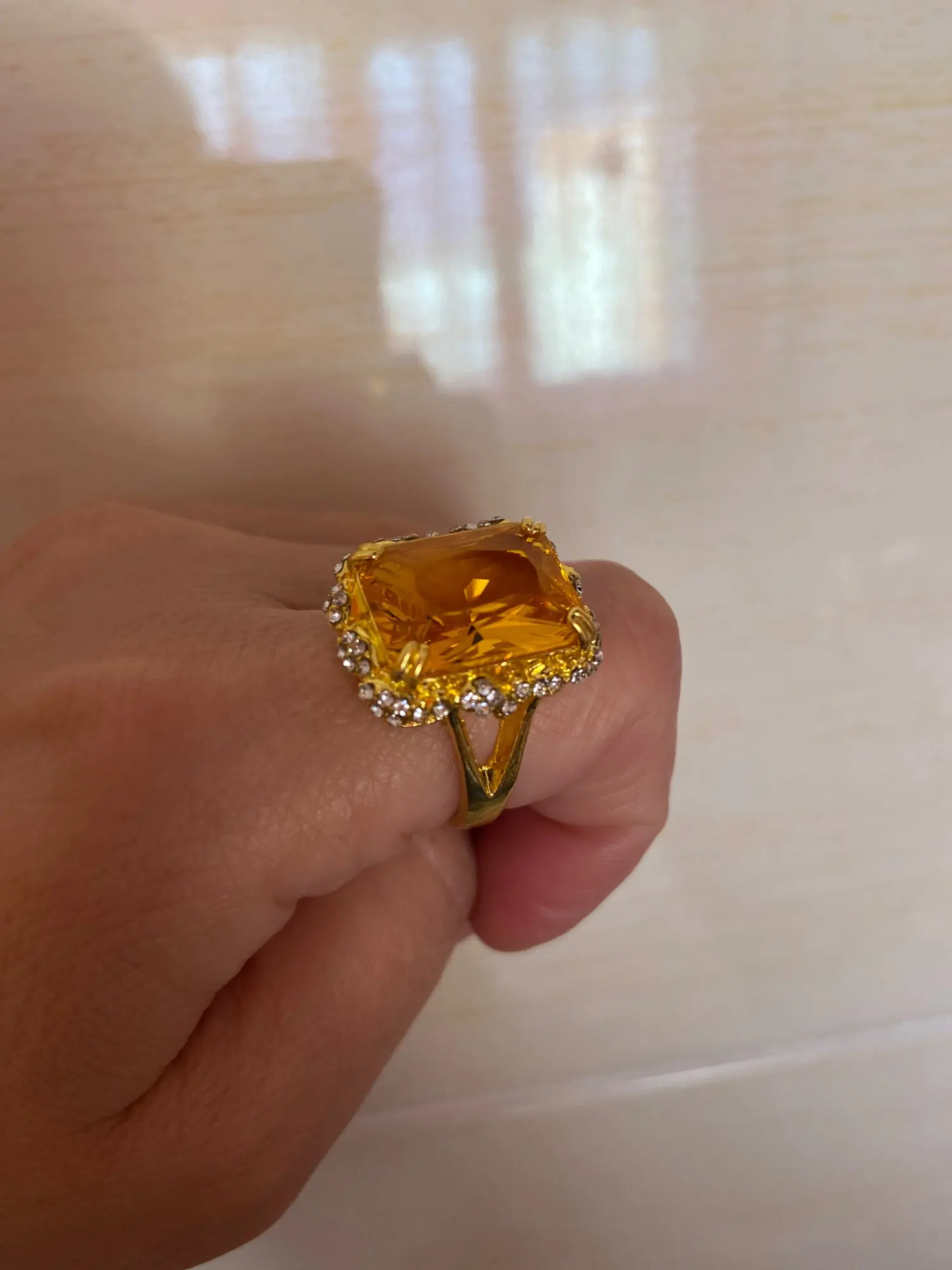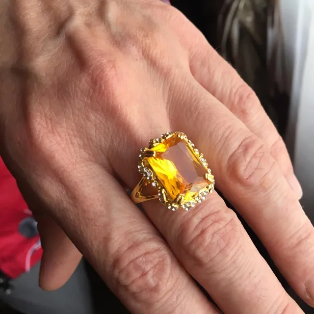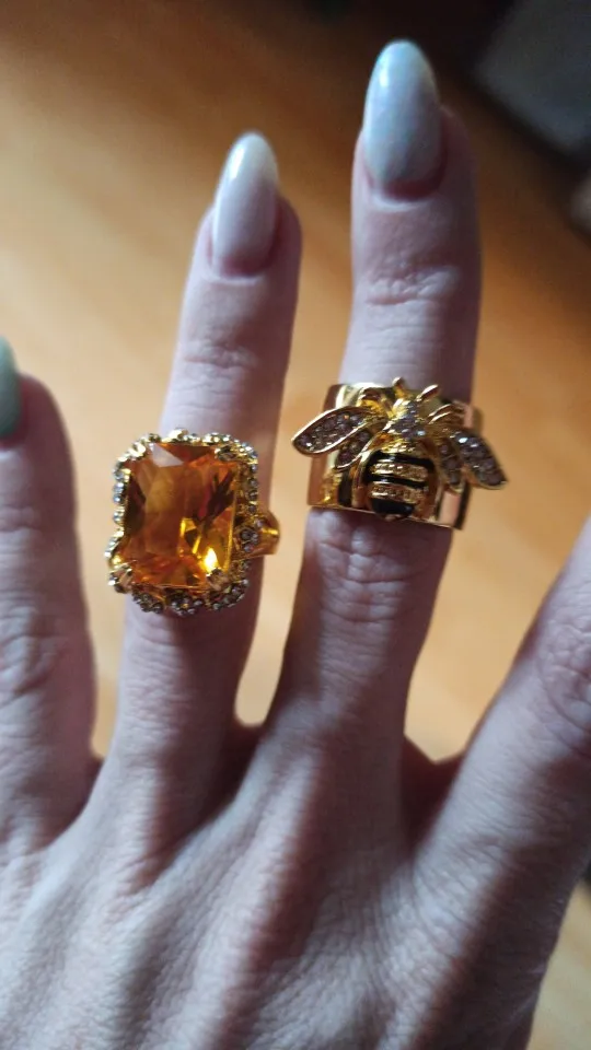 кольцо сильно меньшего размера. камень из пластмассы. цвет желтый, но никак ни Шампань. в целом ничего страшного, если никому не показывать вблизи